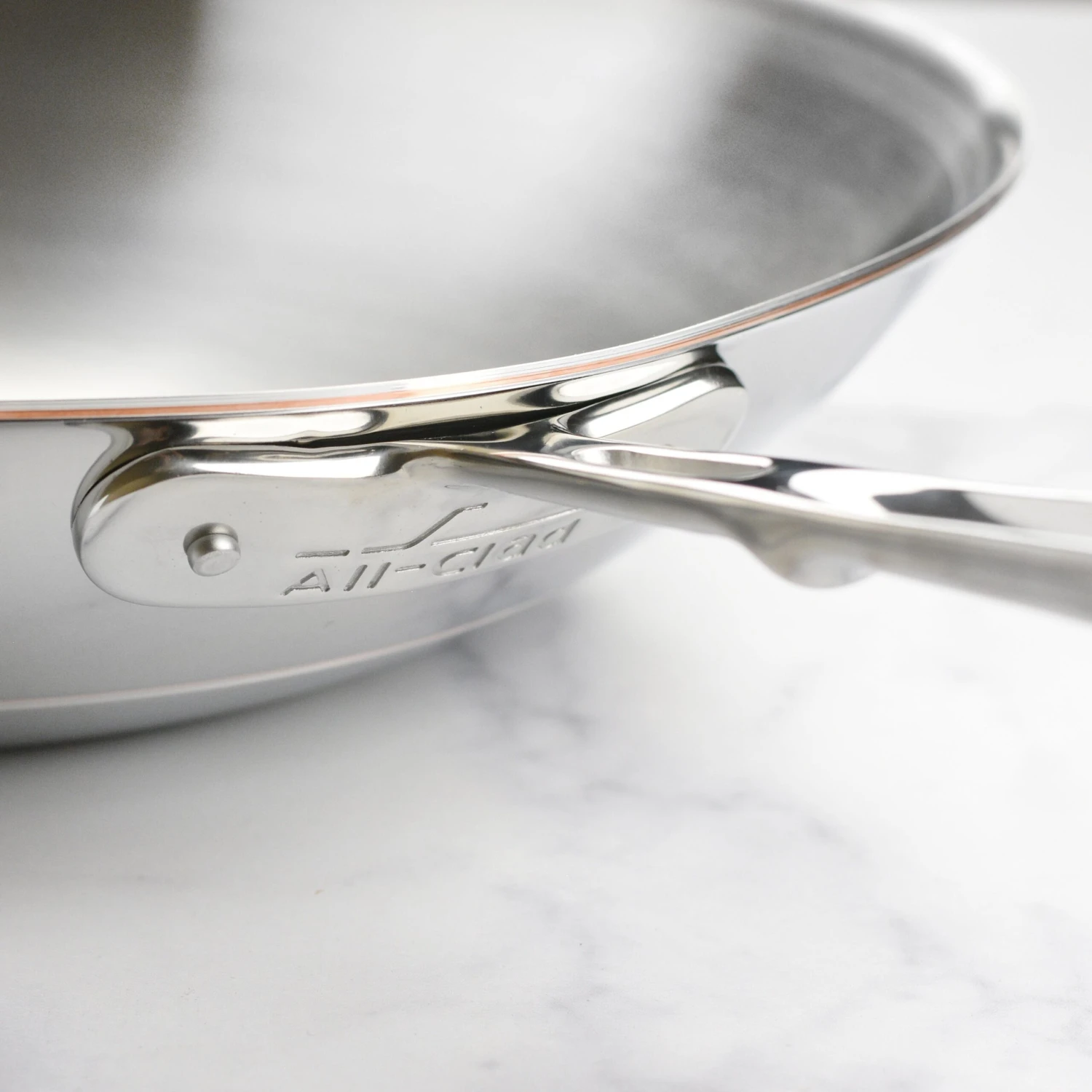 - 5-ply bonded construction with stainless steel, aluminum, and a thick copper core for fast and even heating, warp-free strength and ultimate responsiveness
