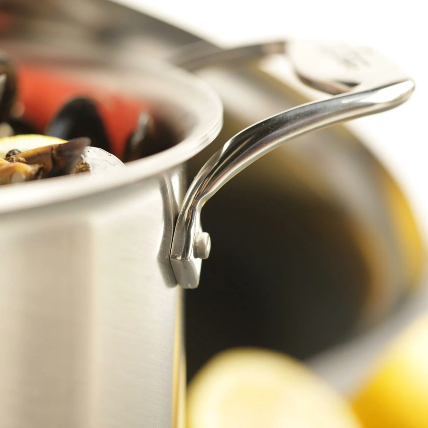 - Brushed finish 5-ply bonded construction with alternating layers of 18/10 stainless steel and aluminum for warp-free durability and supremely even heating that eliminates hot spots
