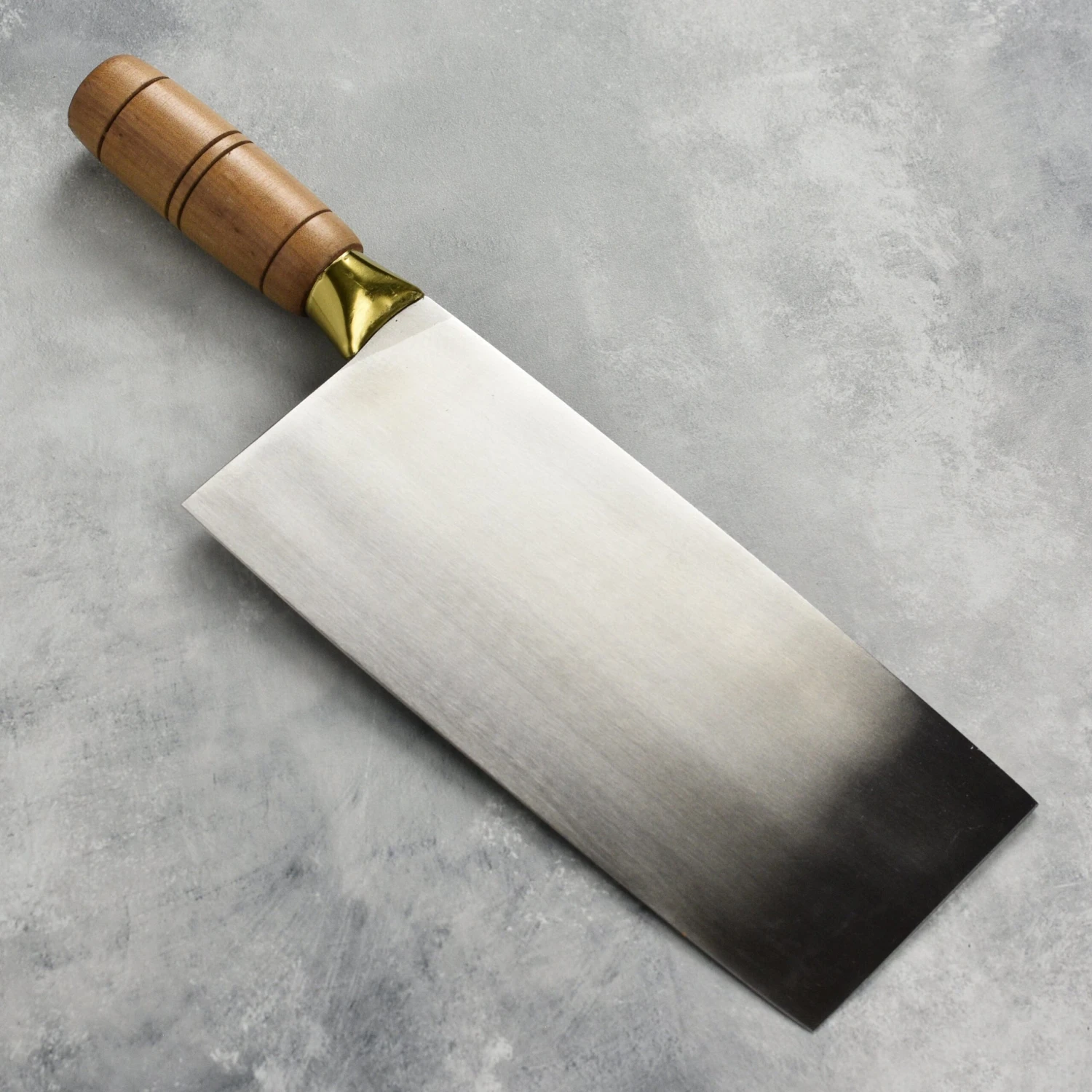 - Dual purpose heavy Chinese cleaver with the front 2/3 of the blade being thinner for slicing boneless meats and veggies, while the back 1/3 is thicker for heavier jobs like chopping through small poultry bones