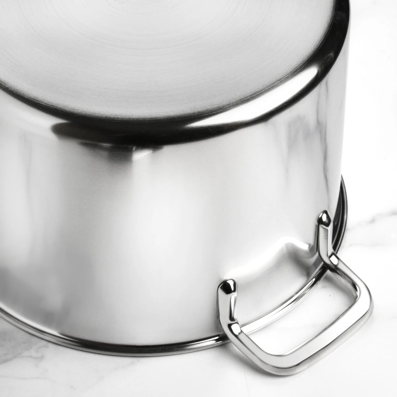 - Stainless steel stay-cool welded handles are more durable and more hygienic, preventing the accumulation of food and grease; spill-proof closed pouring rim with tight-fitting lid that locks in moisture and flavor