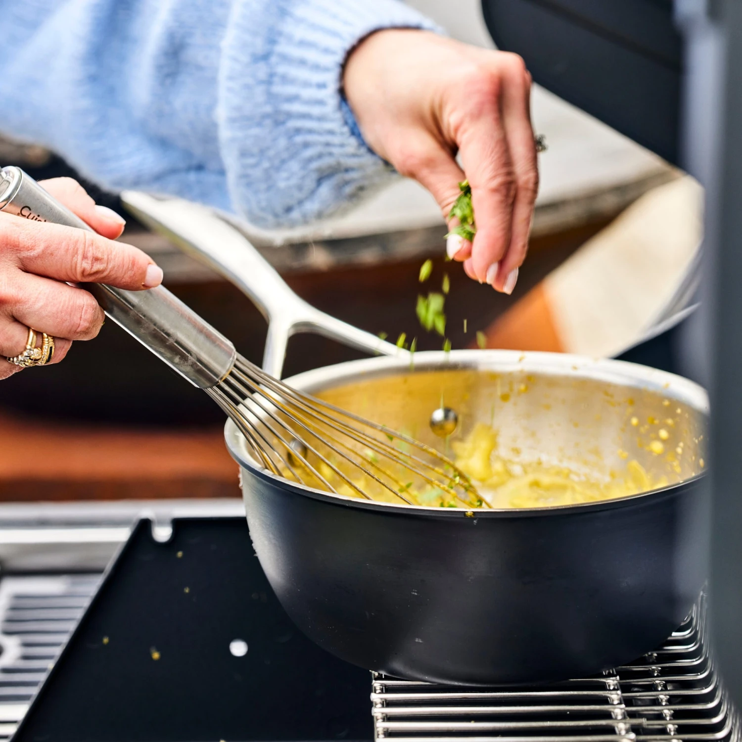 - Signature flat base technology makes it fully induction compatible and hot-spot free, no matter what surface you cook on
