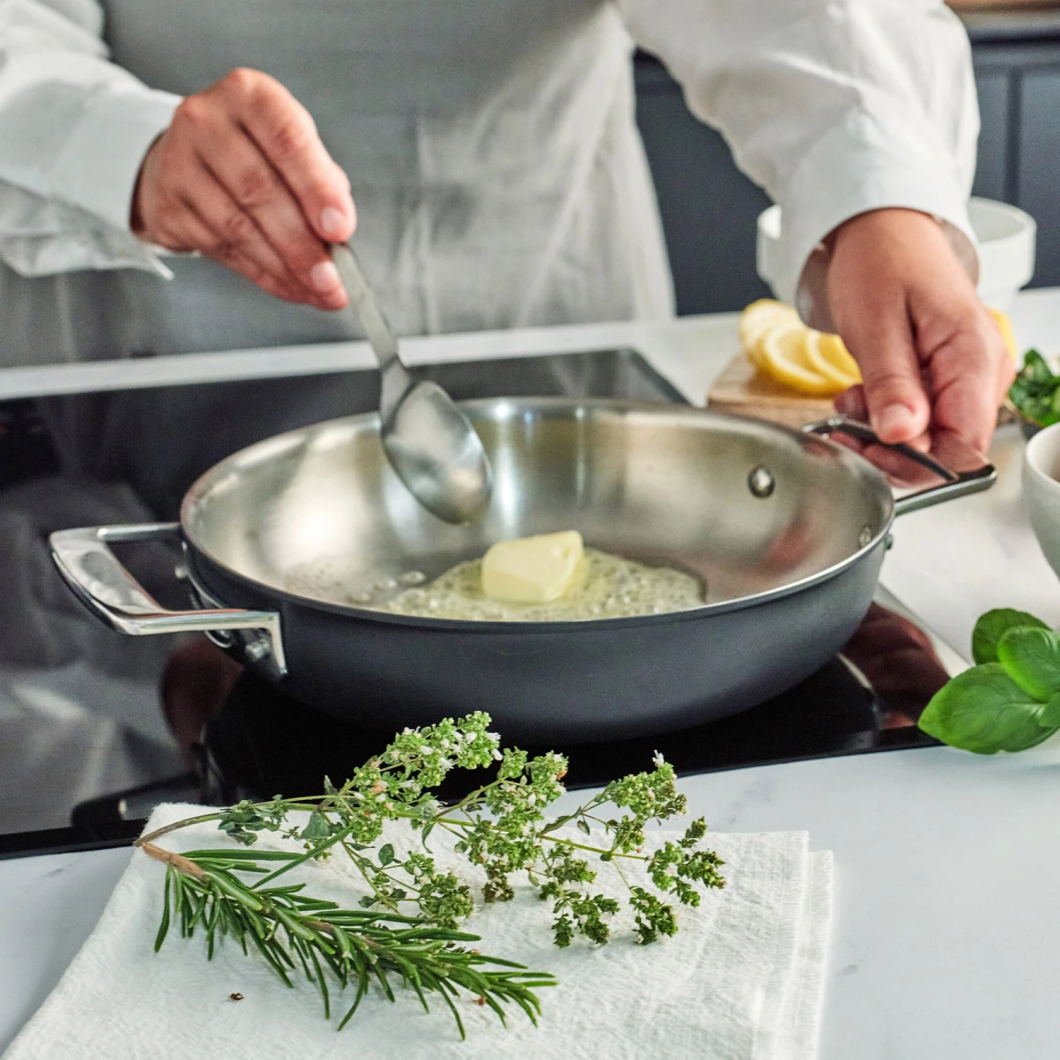 - Signature flat base technology makes it fully induction compatible and hot-spot free, no matter what surface you cook on