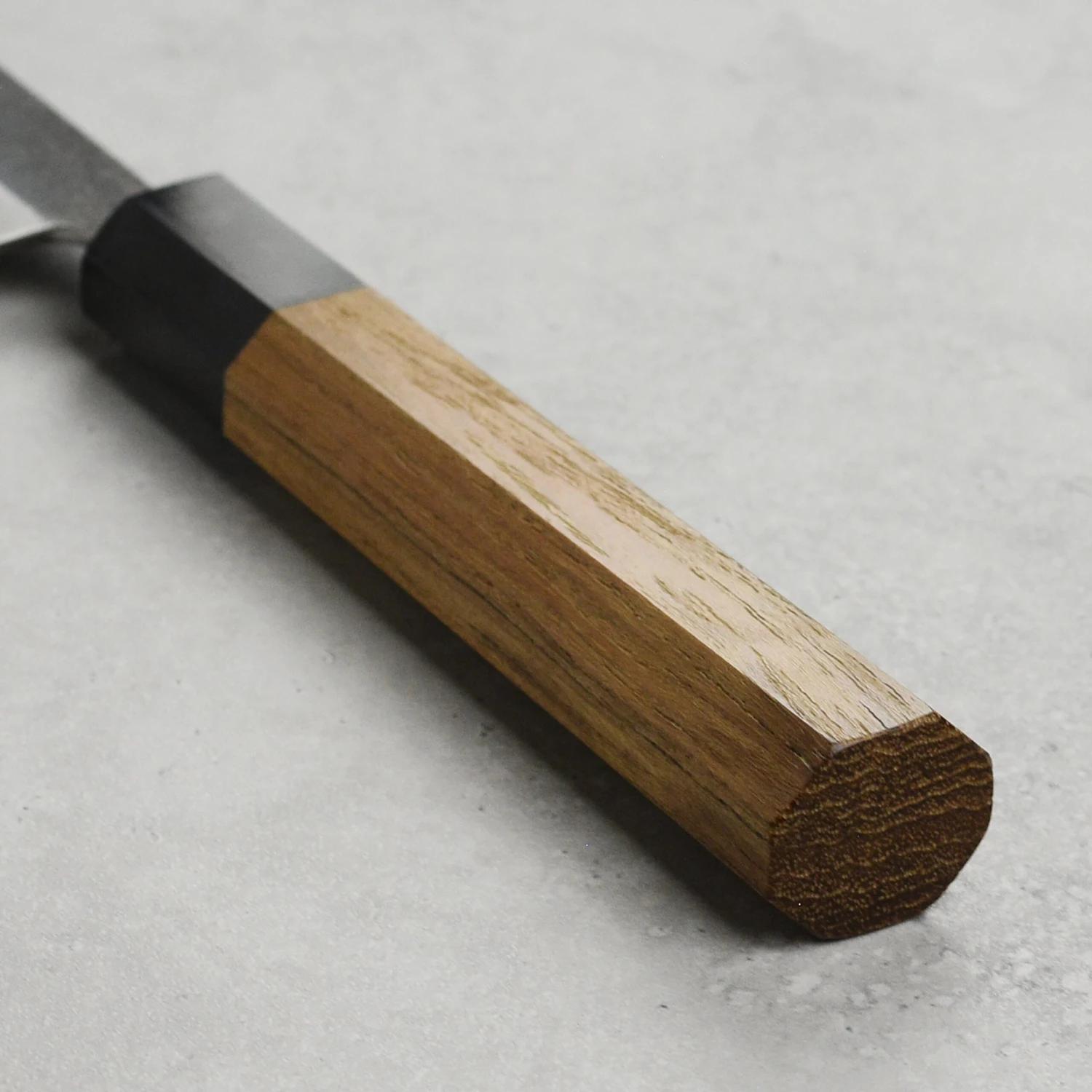 - Teak wood octagonal handle with buffalo horn black ferrule; polished and rounded spine