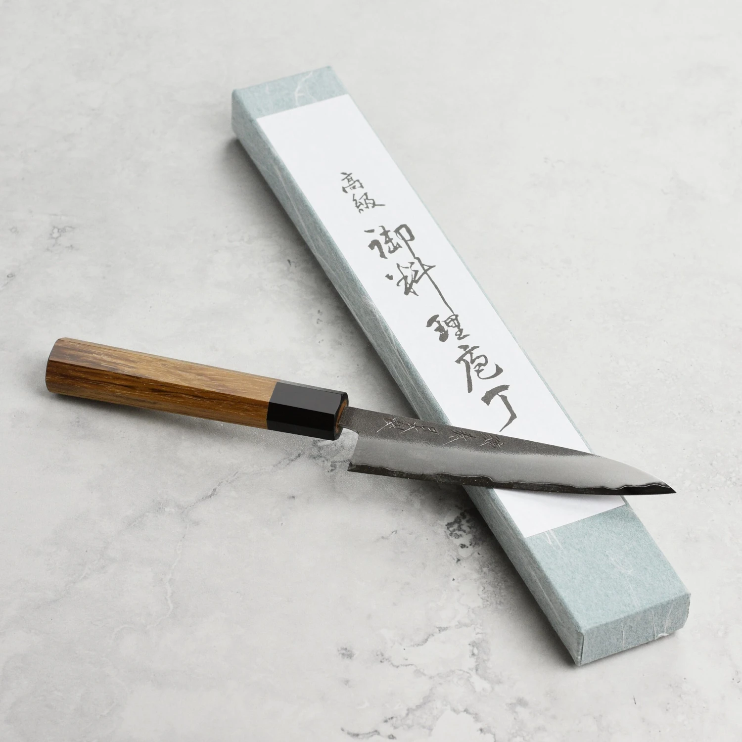 - Cutting core is aogami super (blue super carbon steel) that is then cladded in stainless steel for easier maintenance with the same performance of a carbon steel blade