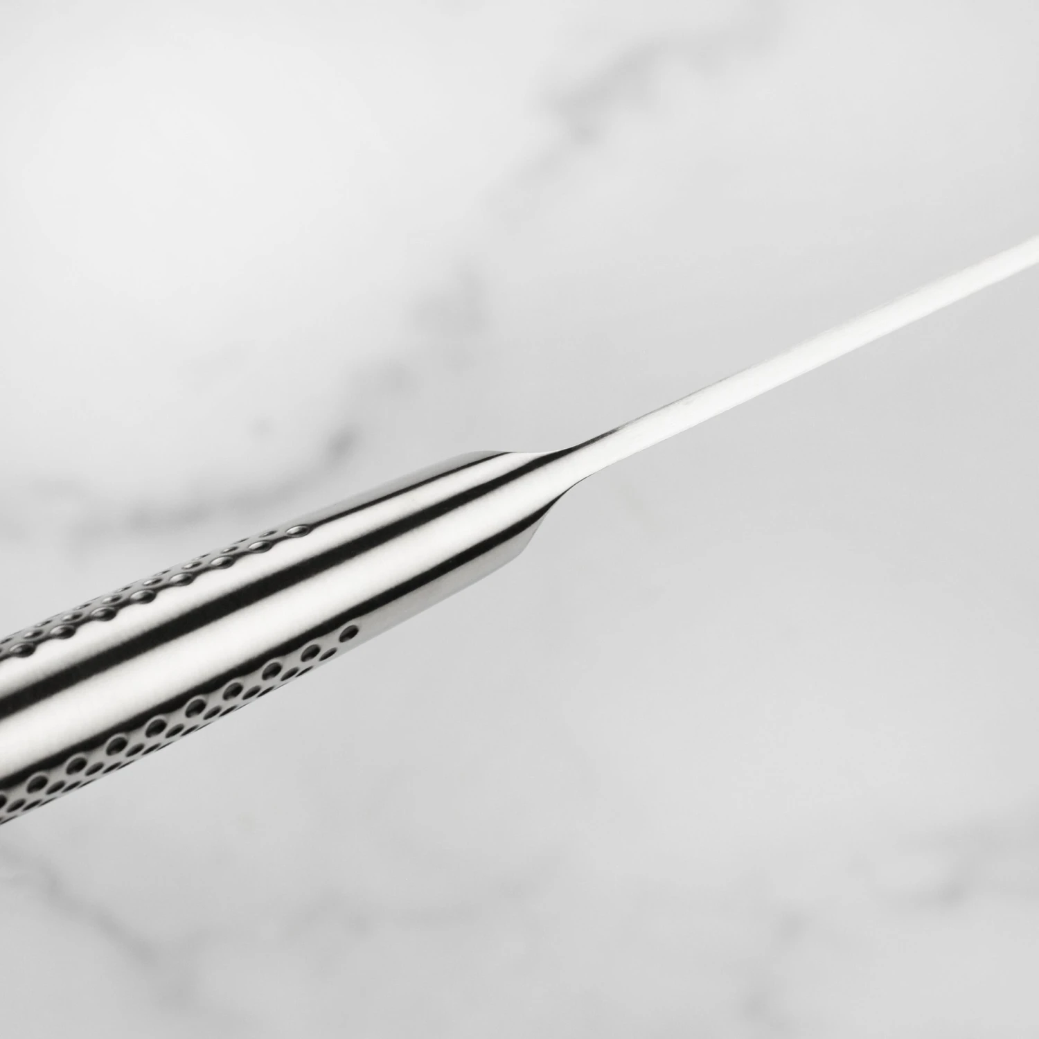 - Stainless steel hygienic handle with signature dimple pattern offering a comfortable, slip-resistant grip