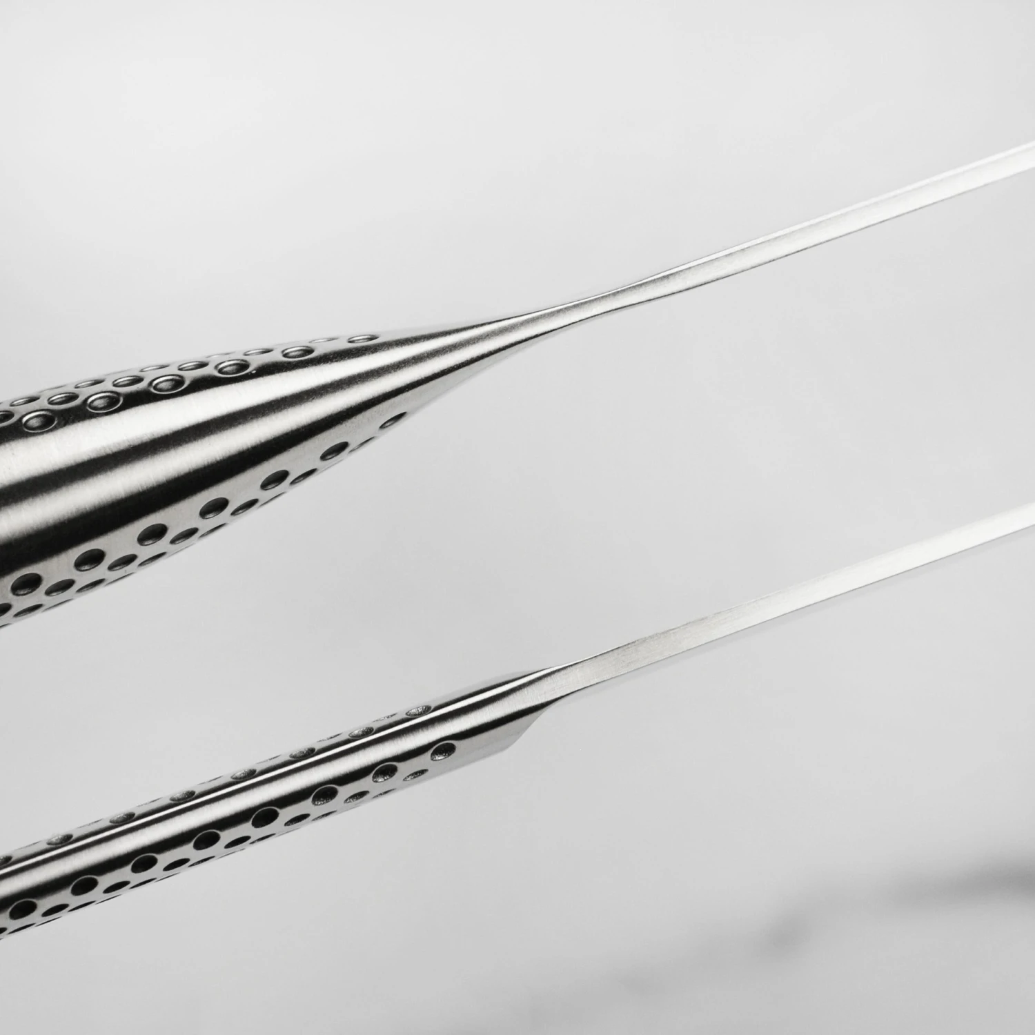 - Stainless steel hygienic handles with signature dimple pattern offering a comfortable, slip-resistant grip