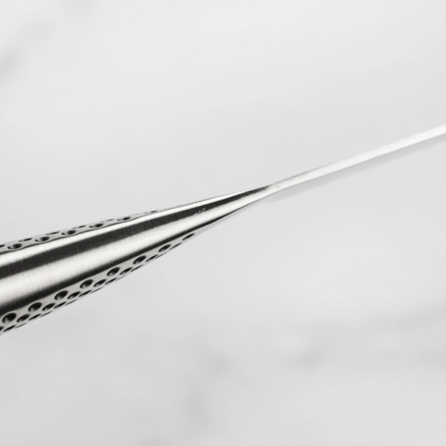 - Stainless steel hygienic handle with signature dimple pattern offering a comfortable, slip-resistant grip