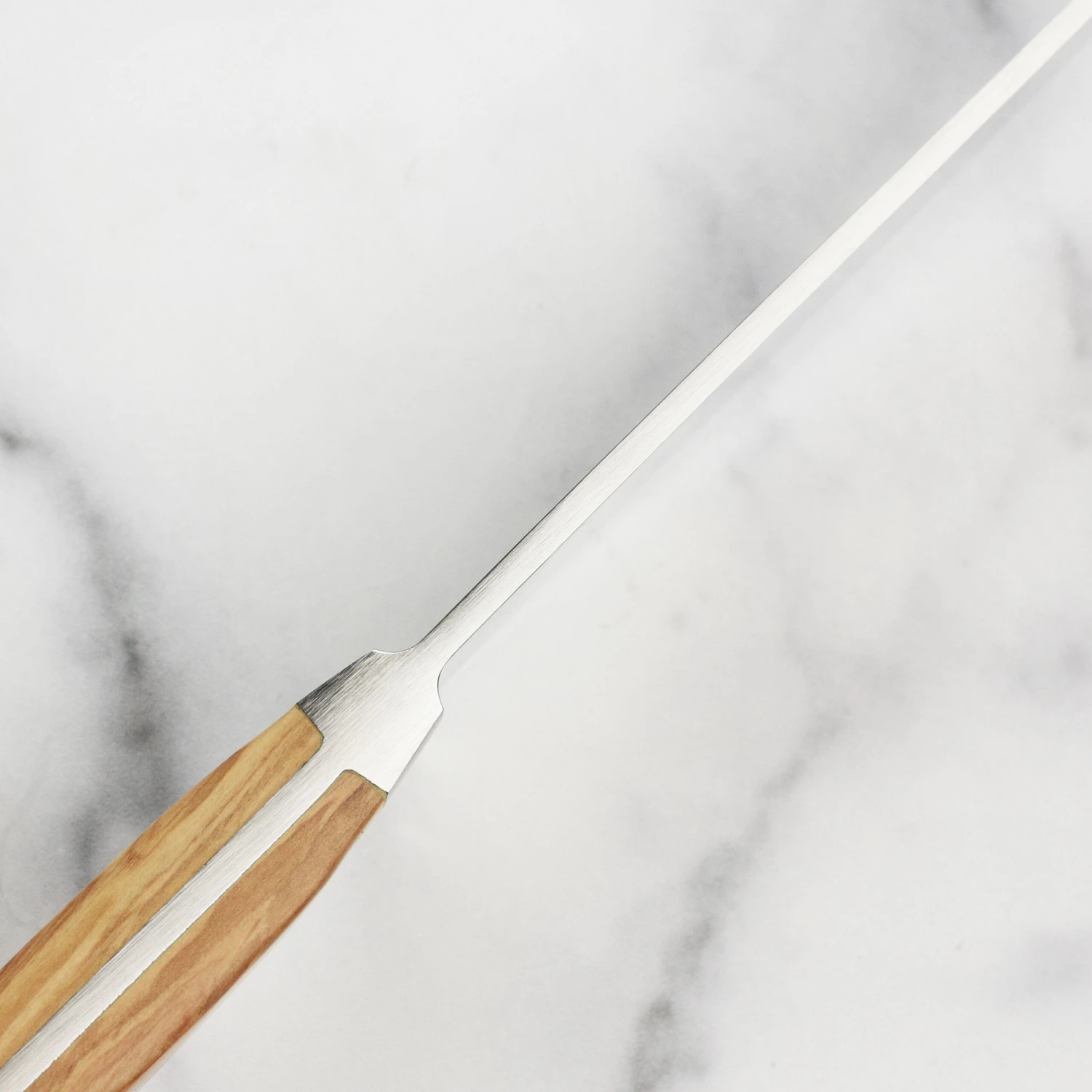 - Ergonomically designed handle made of finely textured, velvety olive wood, a durable and sustainable material that provides a comfortable grip and is easy to clean