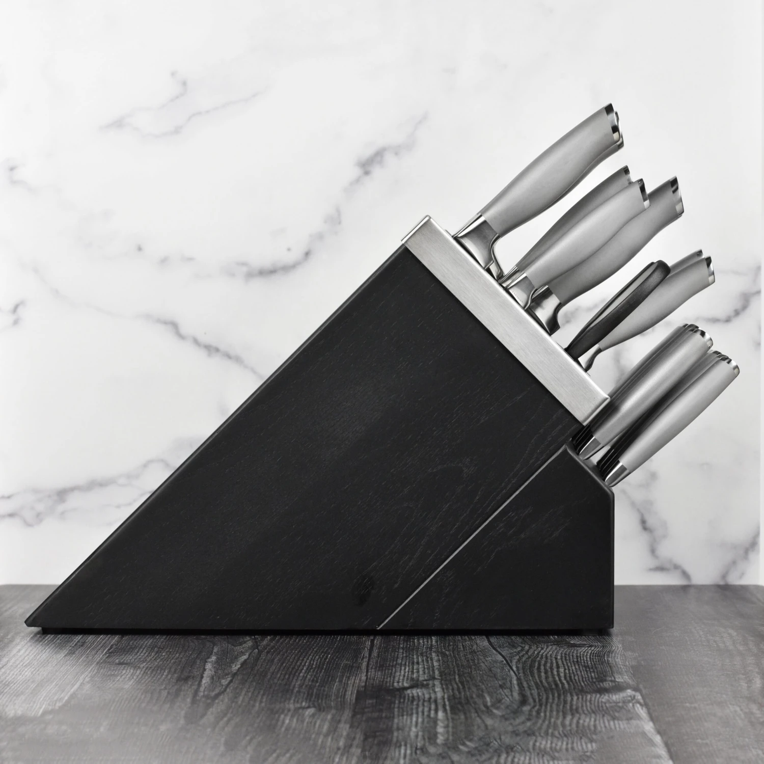 - Full tang, fully forged from high-quality German stainless steel; satin-finished blades produce precision cuts