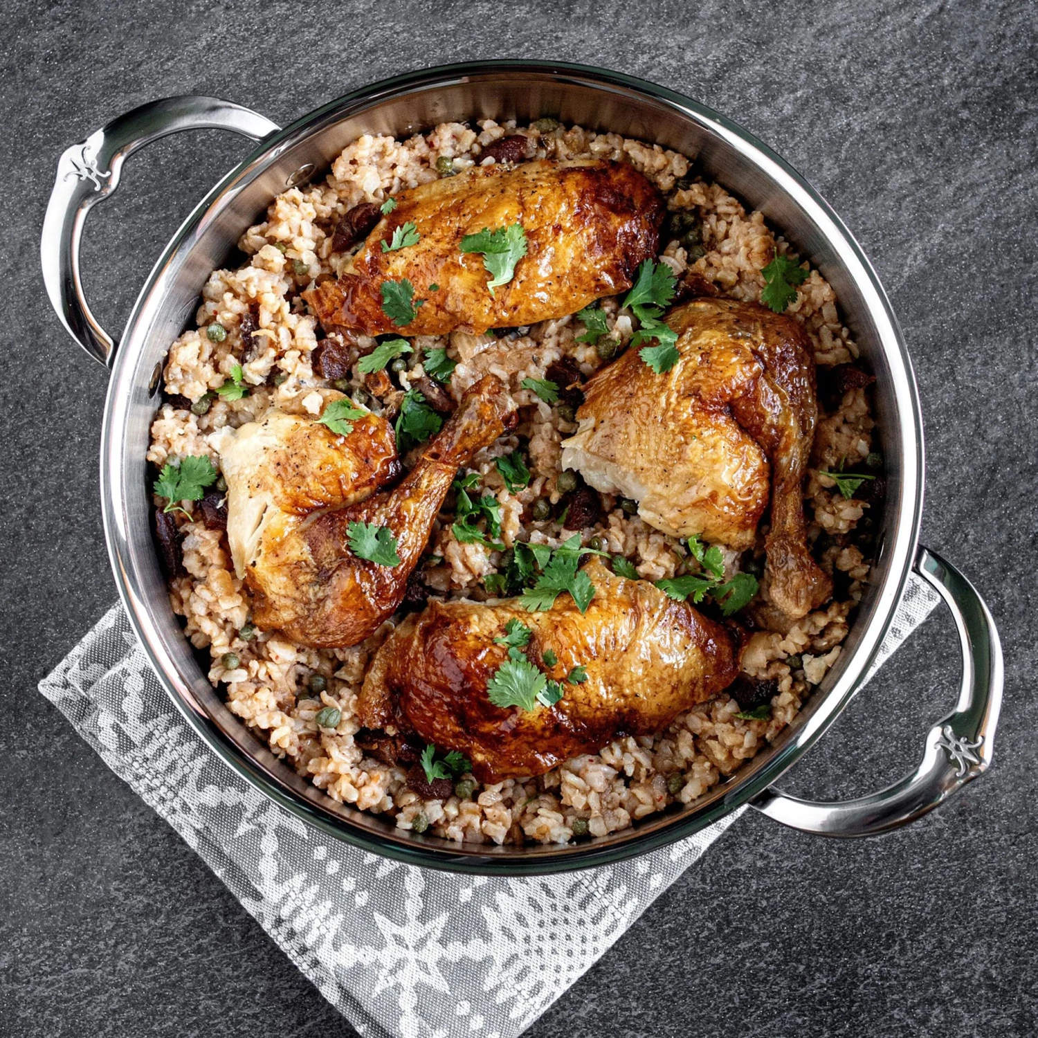 - Stay-cool French-inspired riveted handles for greater comfort and control; includes tight-fitting polished stainless steel lid