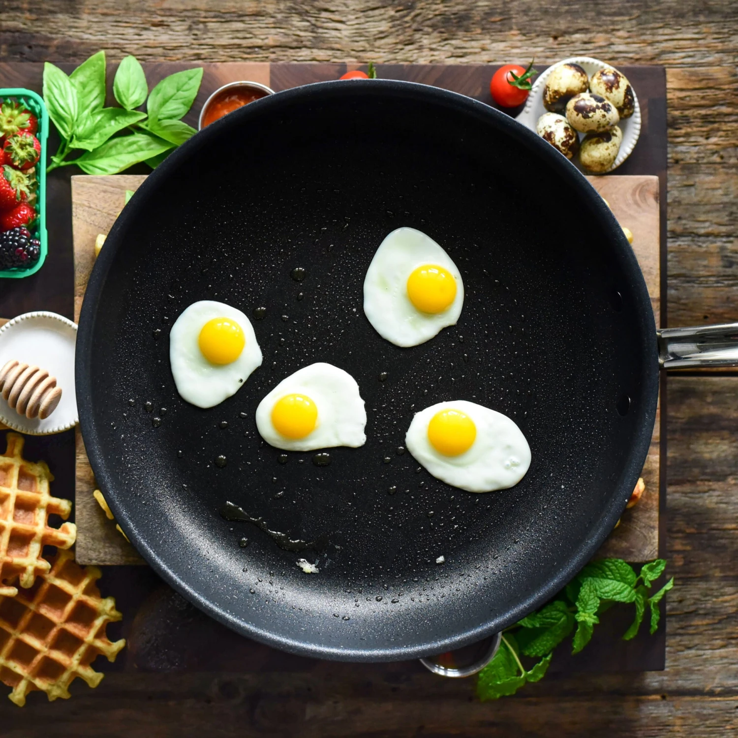- 5-layer system consists of 3-layers of nonstick reinforced with diamond particles; Titum plasma primer provides strength and durability, stainless steel body with sandblasted surface treatment to guarantee increased grip for nonstick coating 22x more durable than other nonstick; excellent searing, browning and deglazing performance due to high heat tolerances and textured nonstick surface