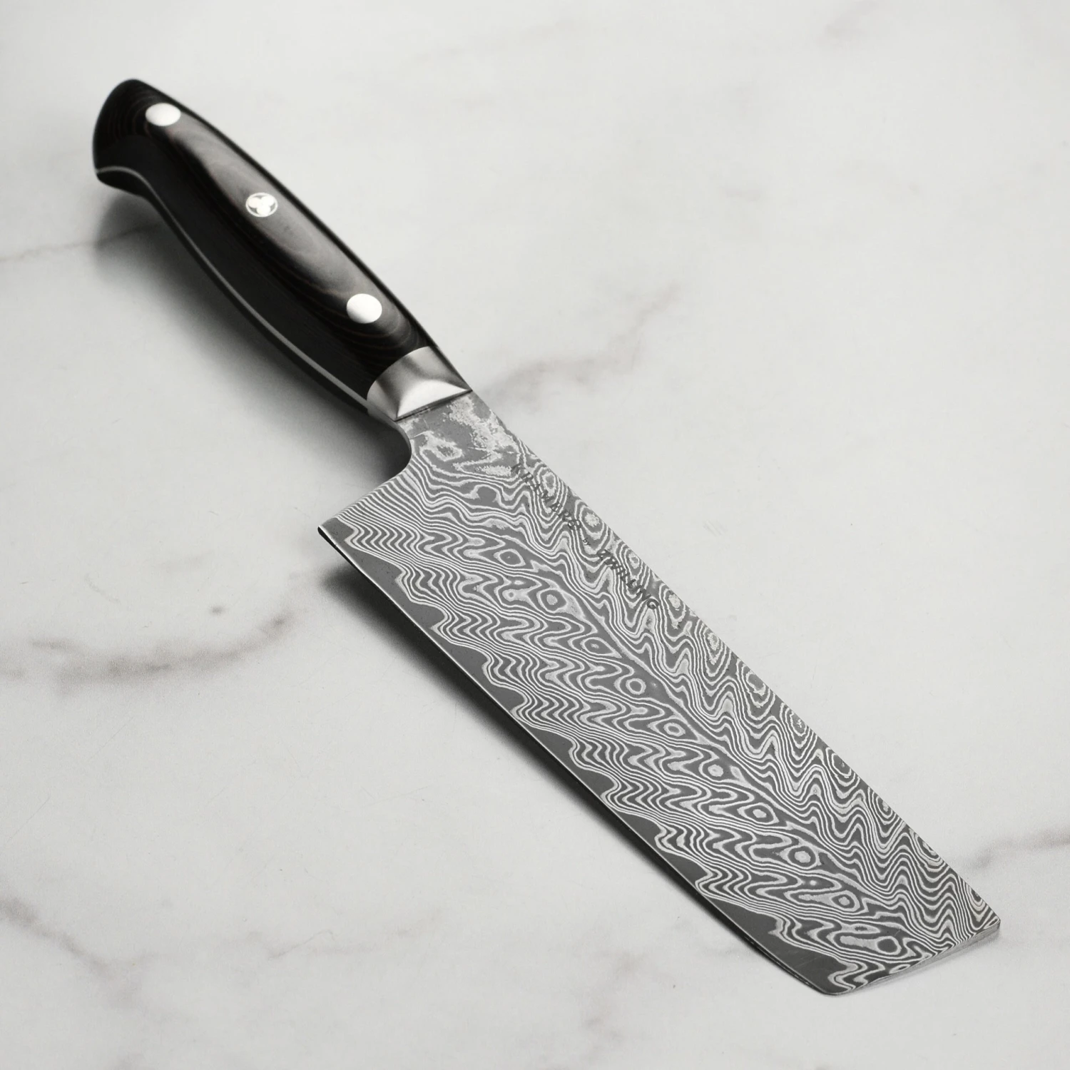 - Features a 101-layer blade with a deep-etched chevron Damascus design and SG2 super-steel core; 63 Rockwell Hardness