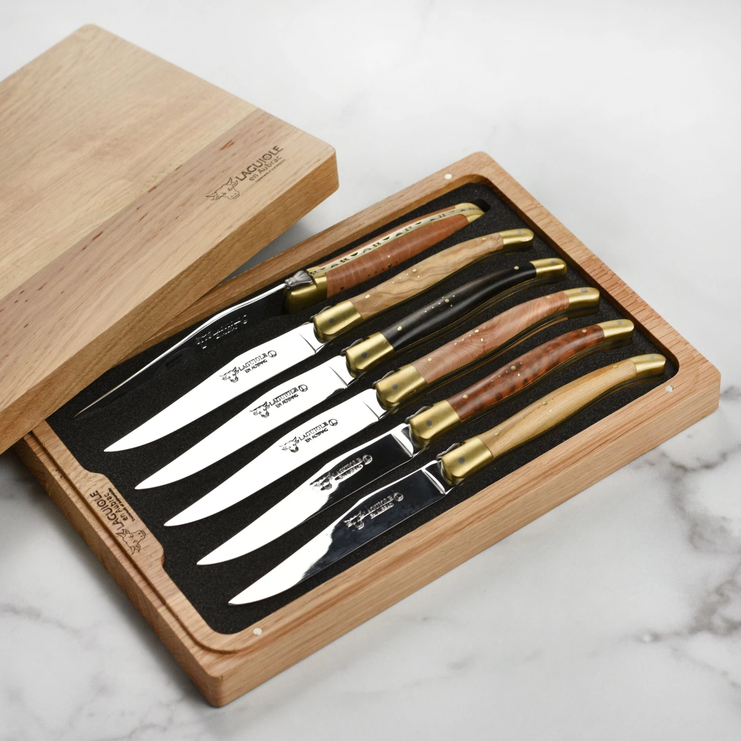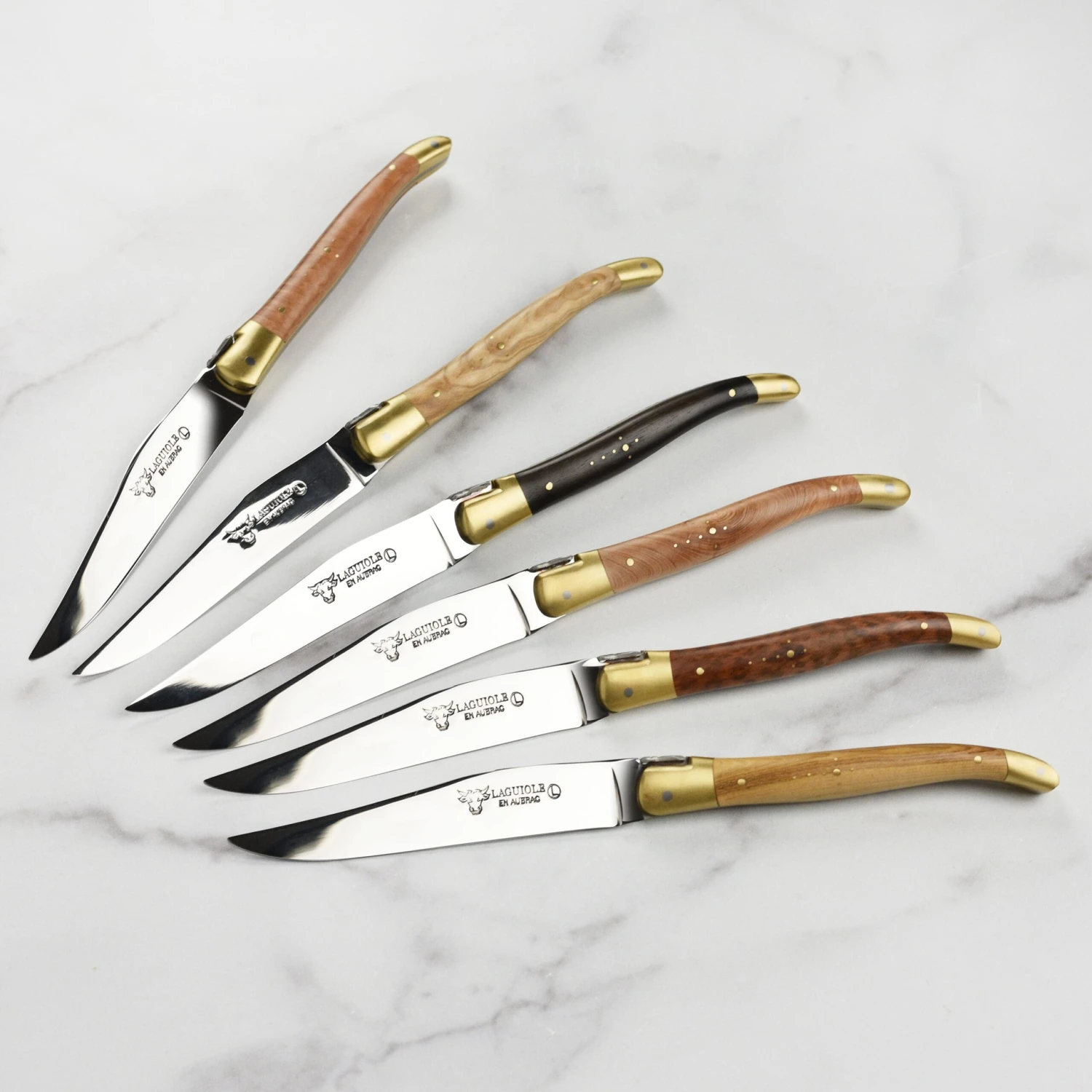 Be the first to review “Laguiole En Aubrac 6 Piece Steak Knife Set With Burl Mixed Wood Handles & Brass Bolsters” Cancel reply