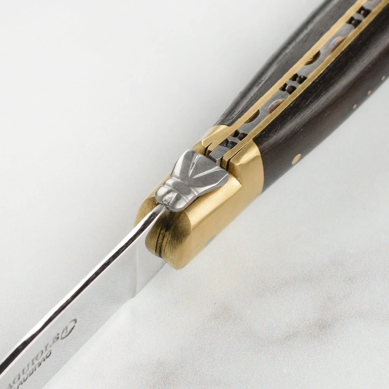 - Features authentic Laguiole en Aubrac “bee” on top of the bolster