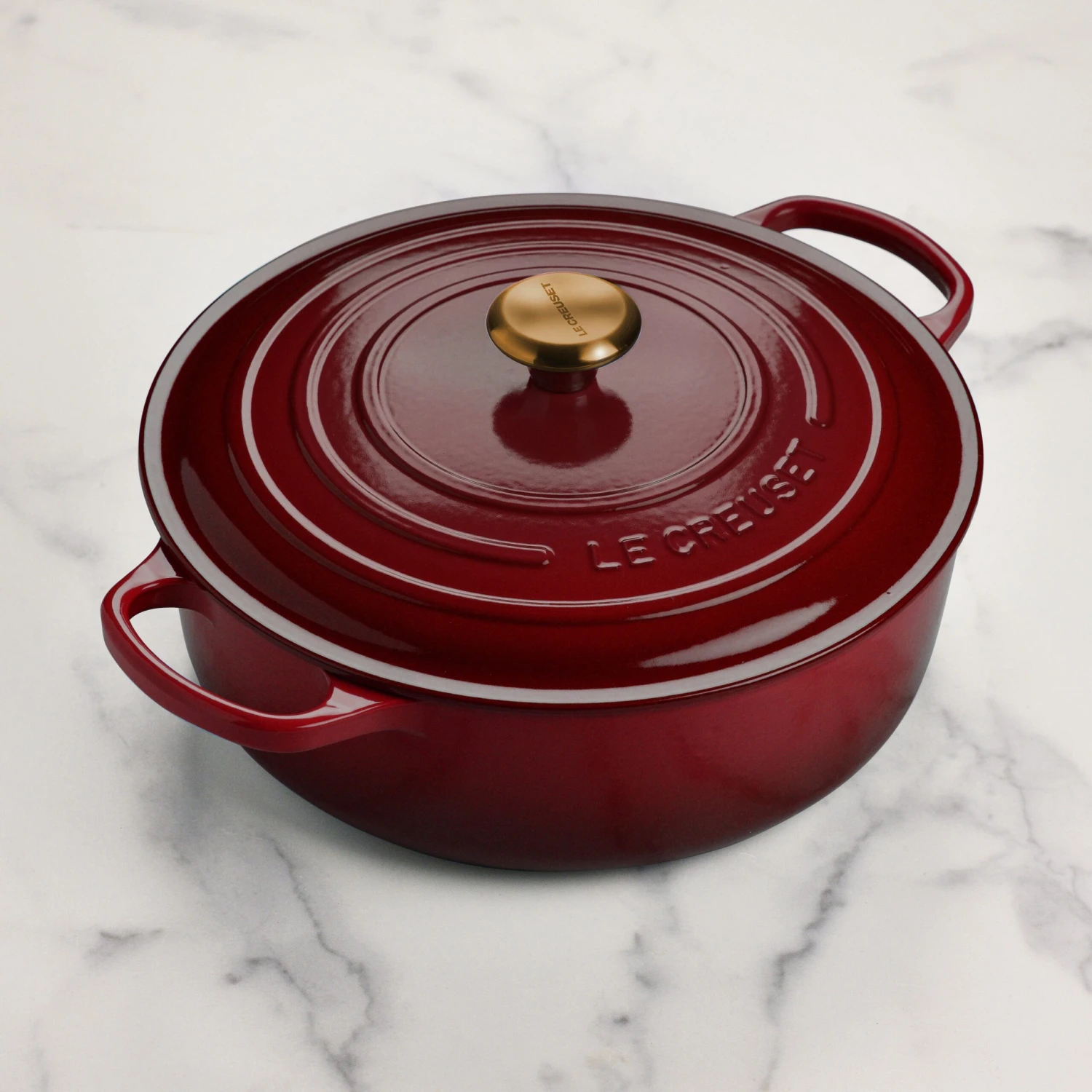 Be the first to review “Le Creuset Signature Cast Iron 6.75-quart Rhone Round Wide Dutch Oven With Gold Knob” Cancel reply