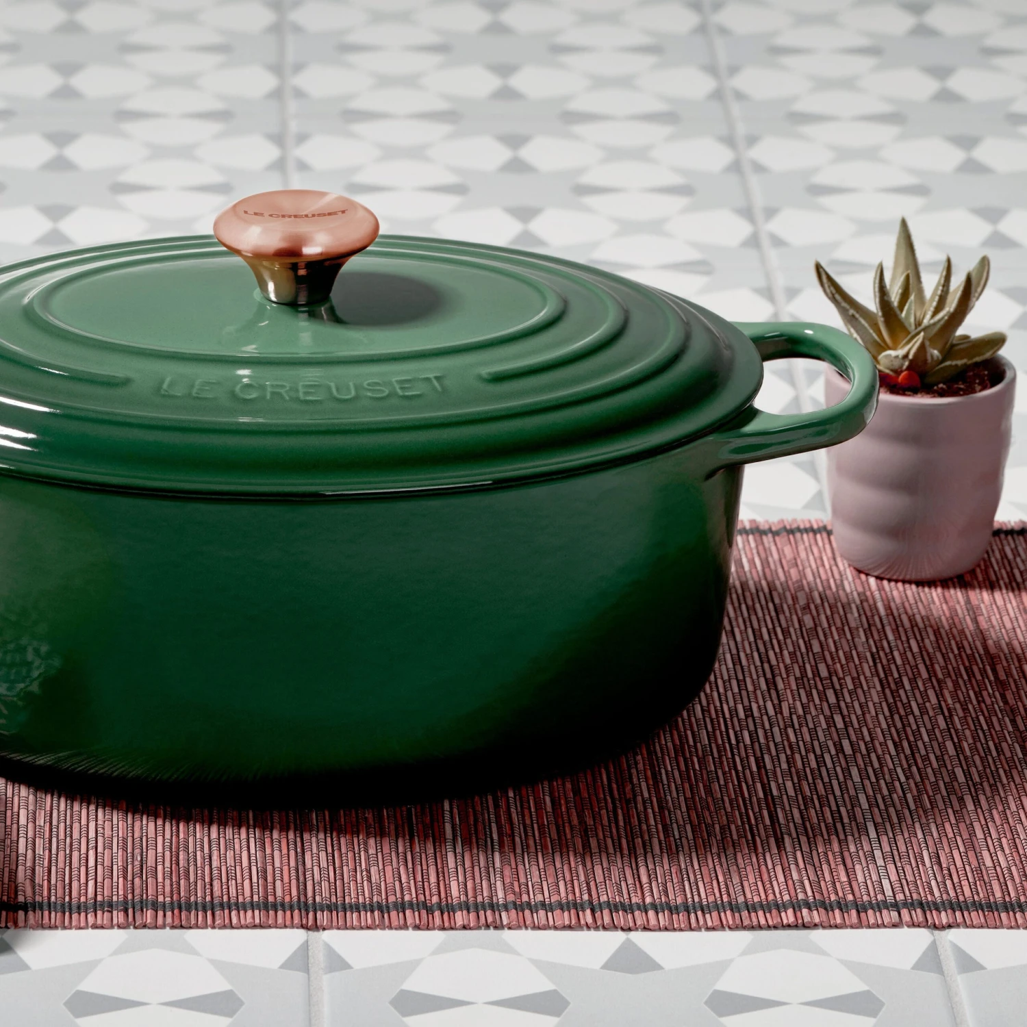 Be the first to review “Le Creuset Signature Cast Iron 8-quart Artichaut Oval Dutch Oven With Copper Knob” Cancel reply