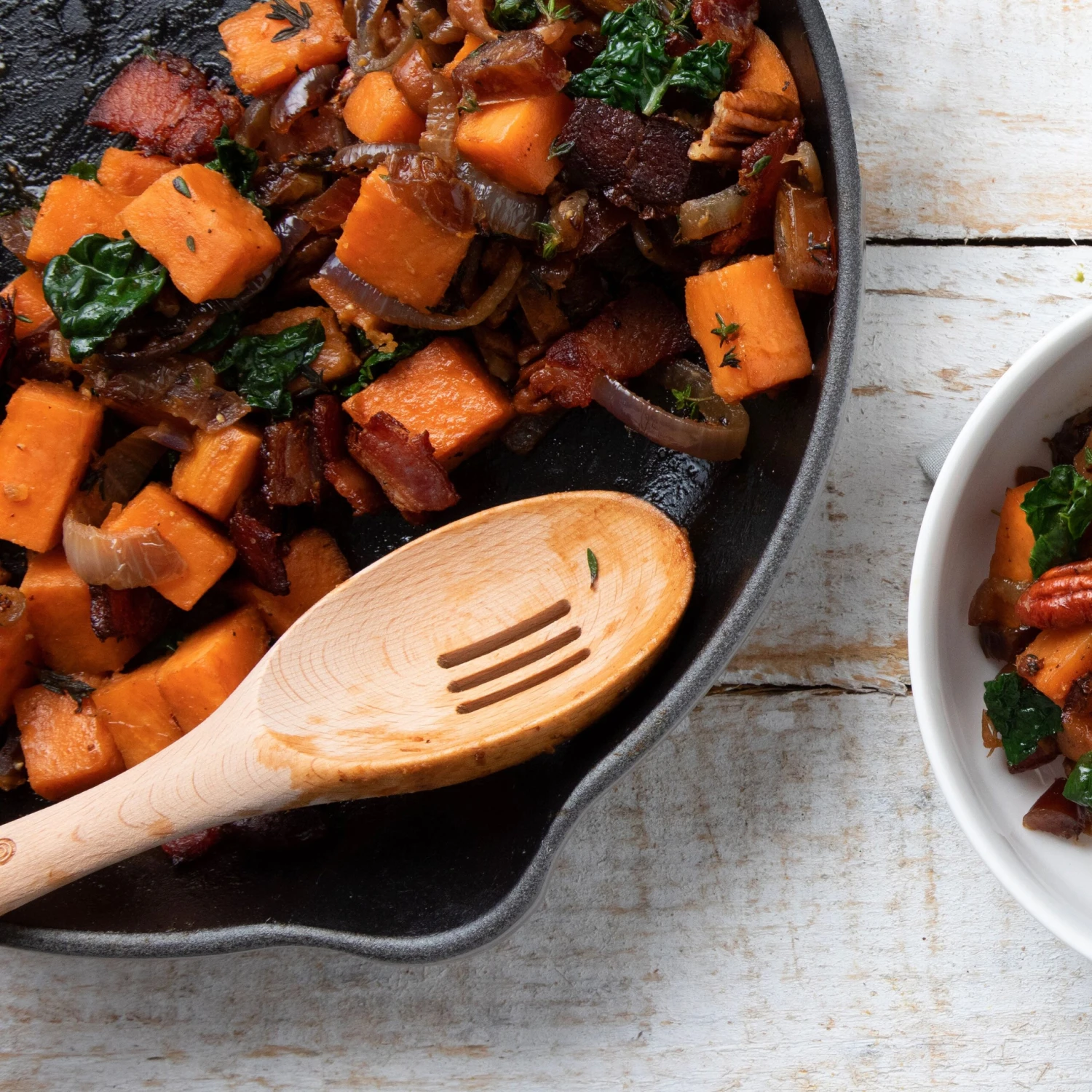 - Cast iron handle and wide-loop handle designed for easy lifting and transferring; pour spouts are designed for pouring sauces and drippings without the mess