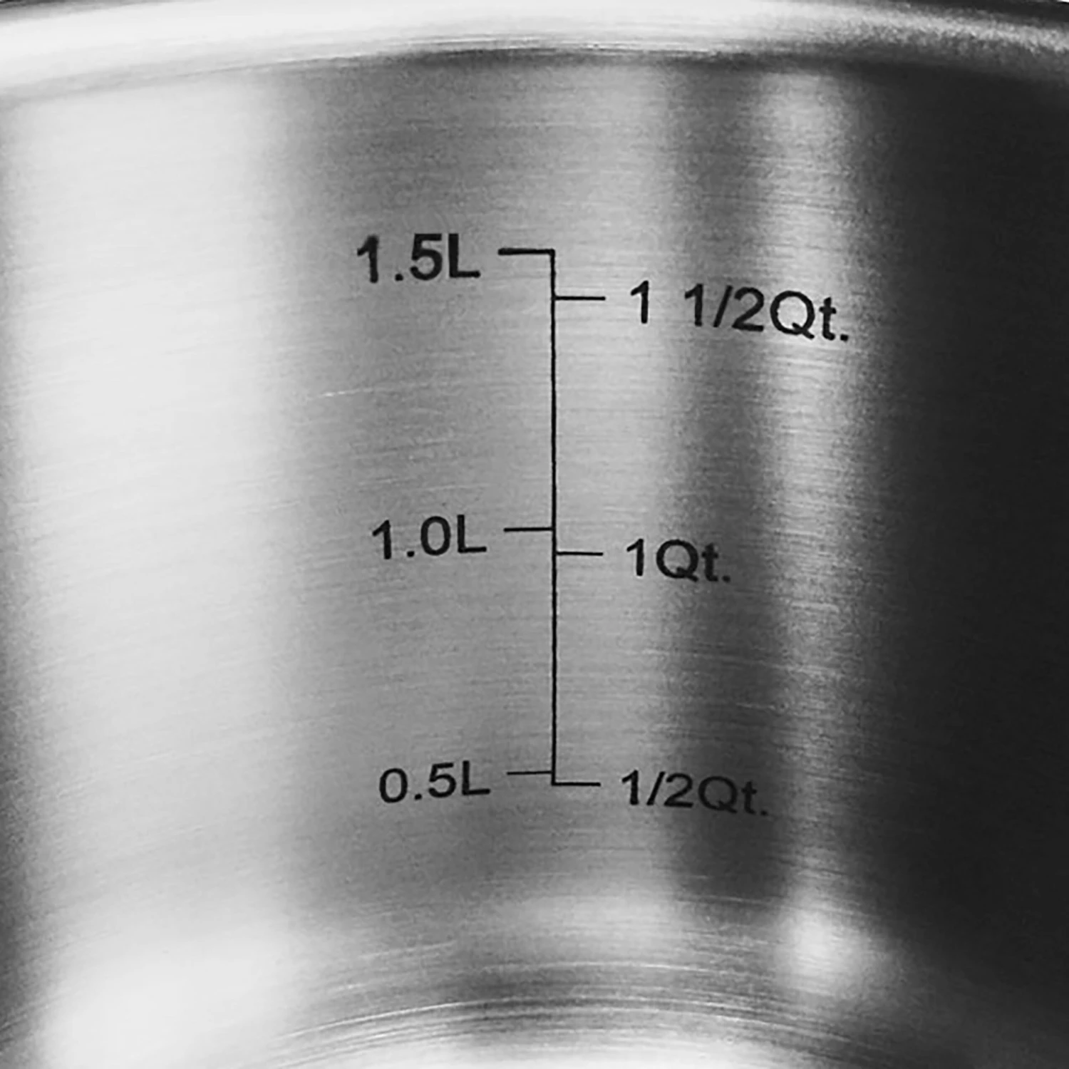 - Tri-ply stainless steel construction features a full aluminum core with a magnetic exterior side-wall with precision-pour rim; in-vessel laser-etched capacity markings