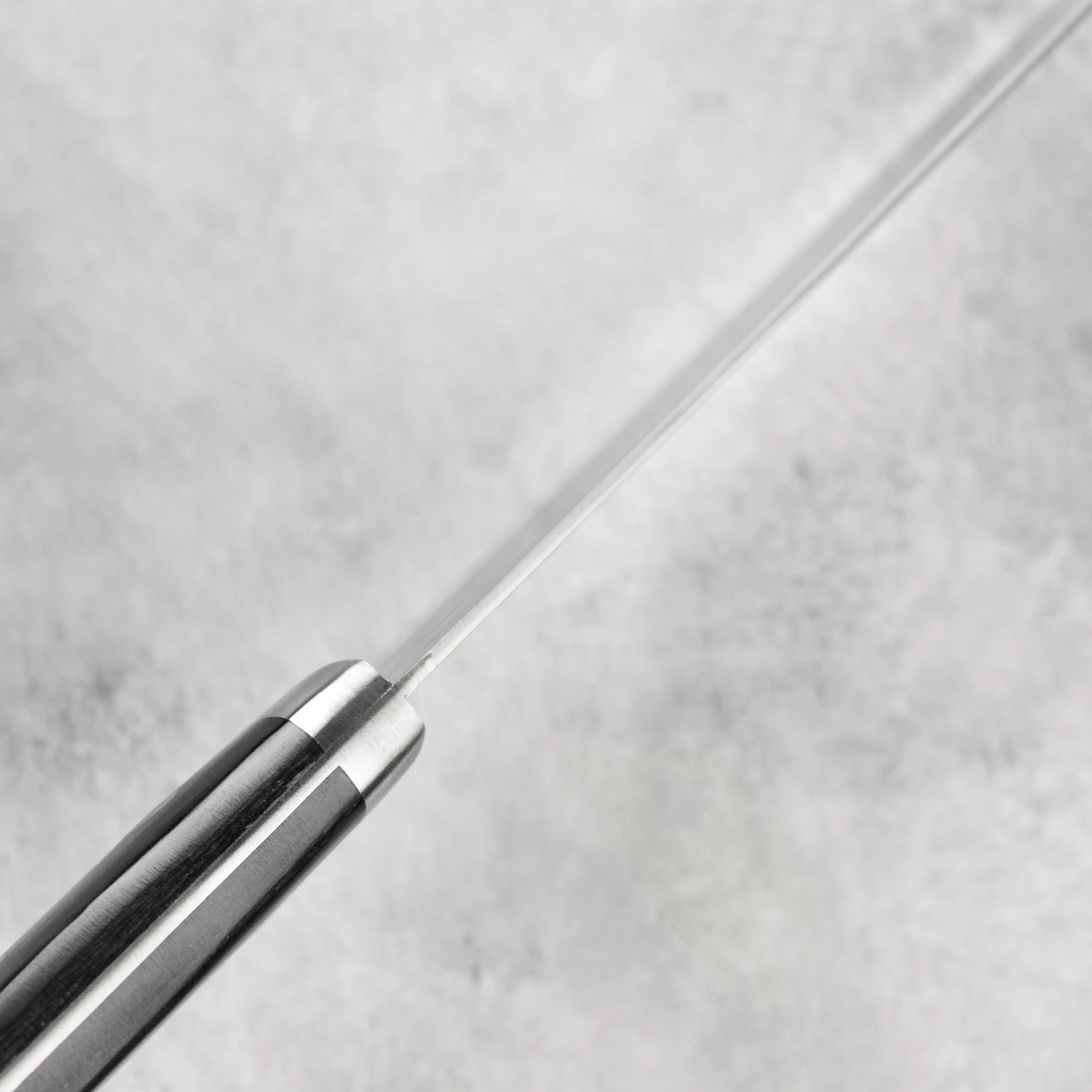 - Black Pakkawood handle with stainless steel rivets and bolster