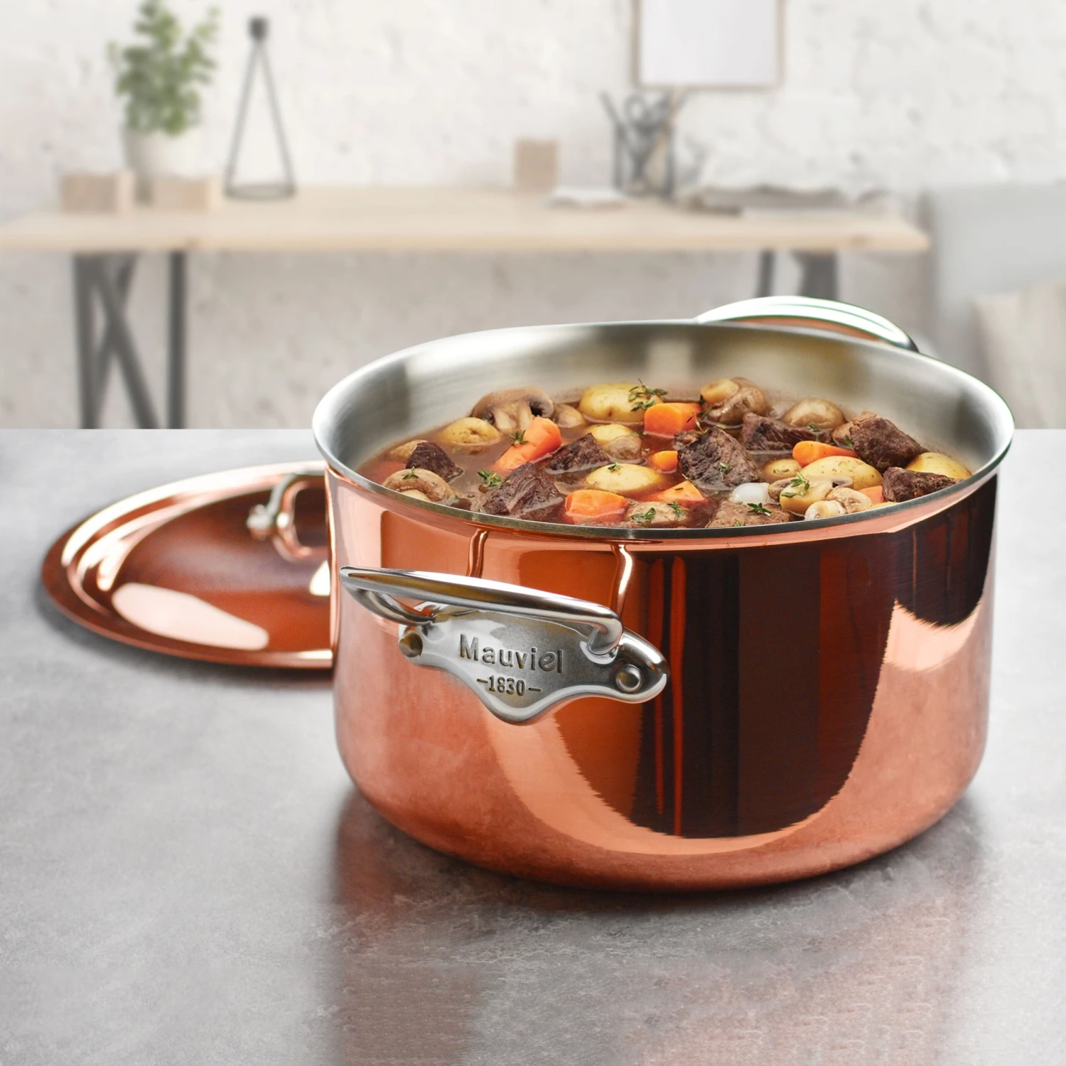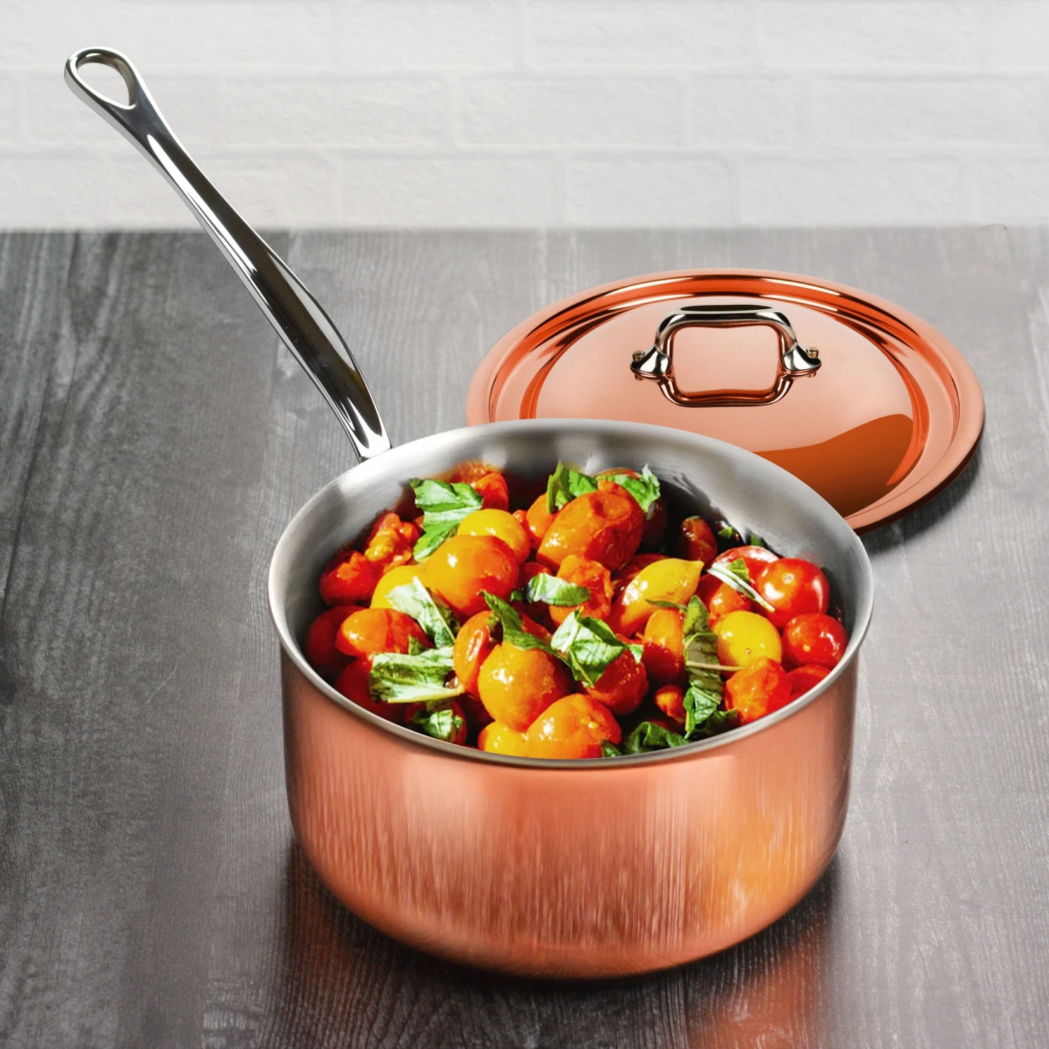 - Includes copper lids with cast stainless steel handles and stainless steel rivets