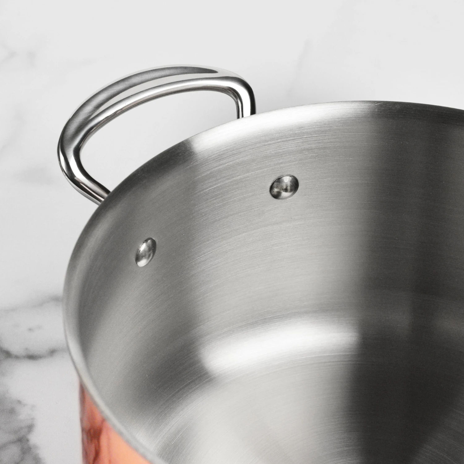 - Includes copper lid with cast stainless steel handle and stainless steel rivets
