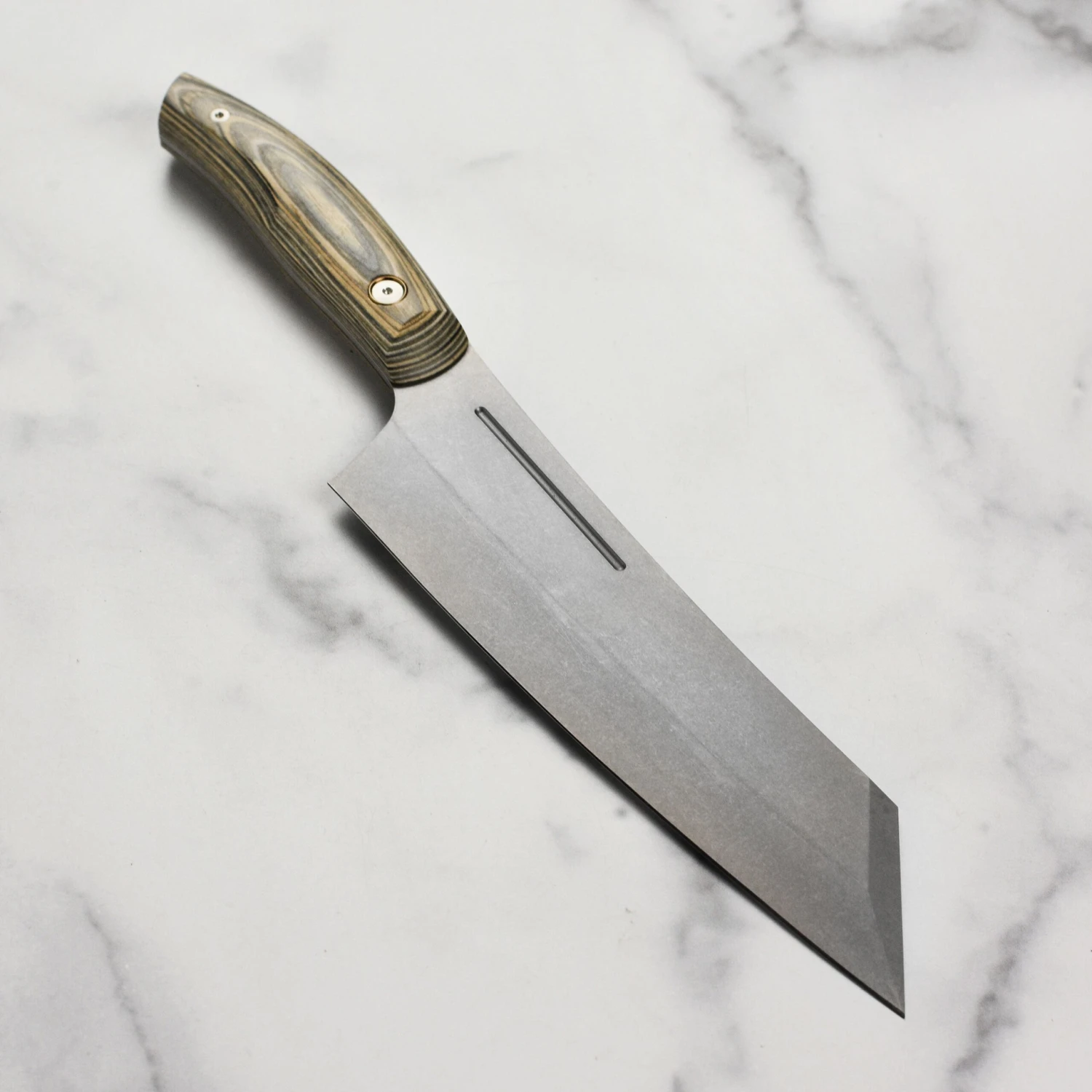 - Ultra-tough handle made from Spanish hardwood shavings, stabilized with non-phenolic natural resins
