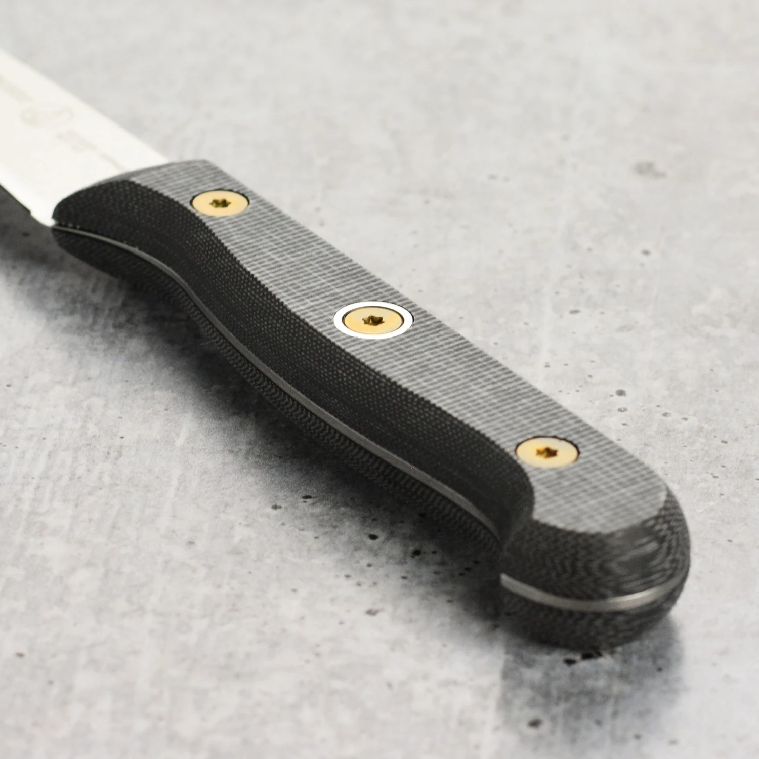 - Triple-rivet handle is precision milled from an incredibly tough material made of reclaimed canvas and natural non-phenolic resin with a natural subtle texture for a more secure grip