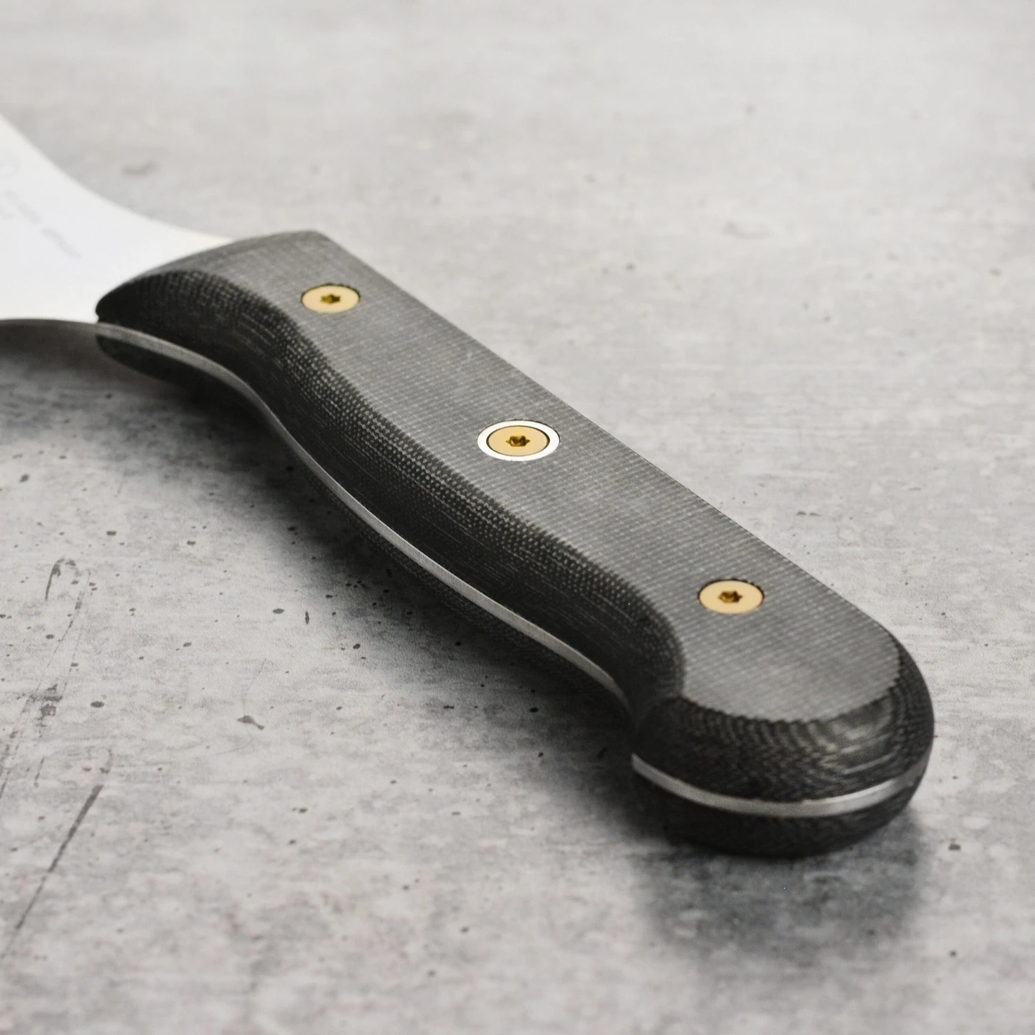 - Triple-rivet handle is precision milled from an incredibly tough material made of reclaimed canvas and natural non-phenolic resin with a natural subtle texture for a more secure grip