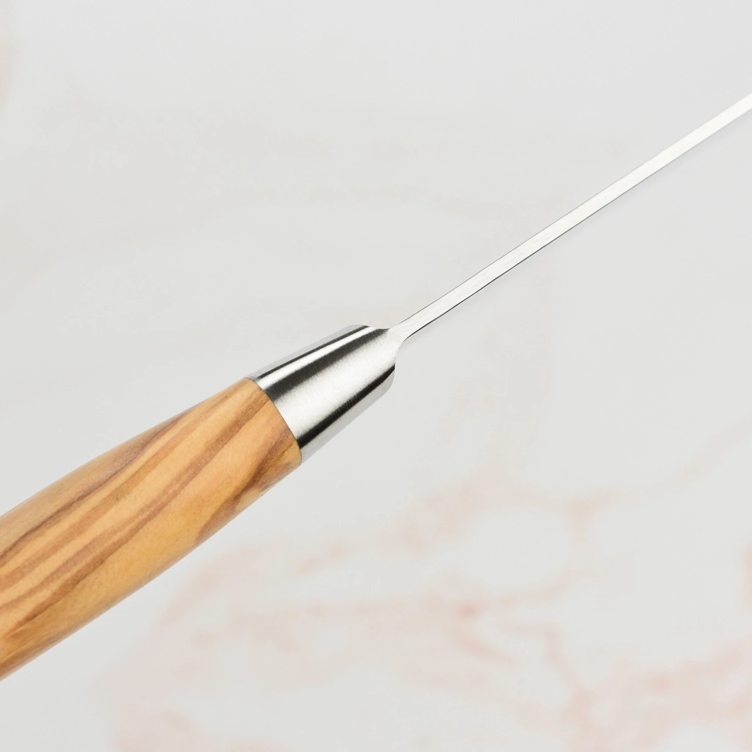 - Natural, Italian olive wood handle provides a secure ergonomic grip with an unsurpassed balance