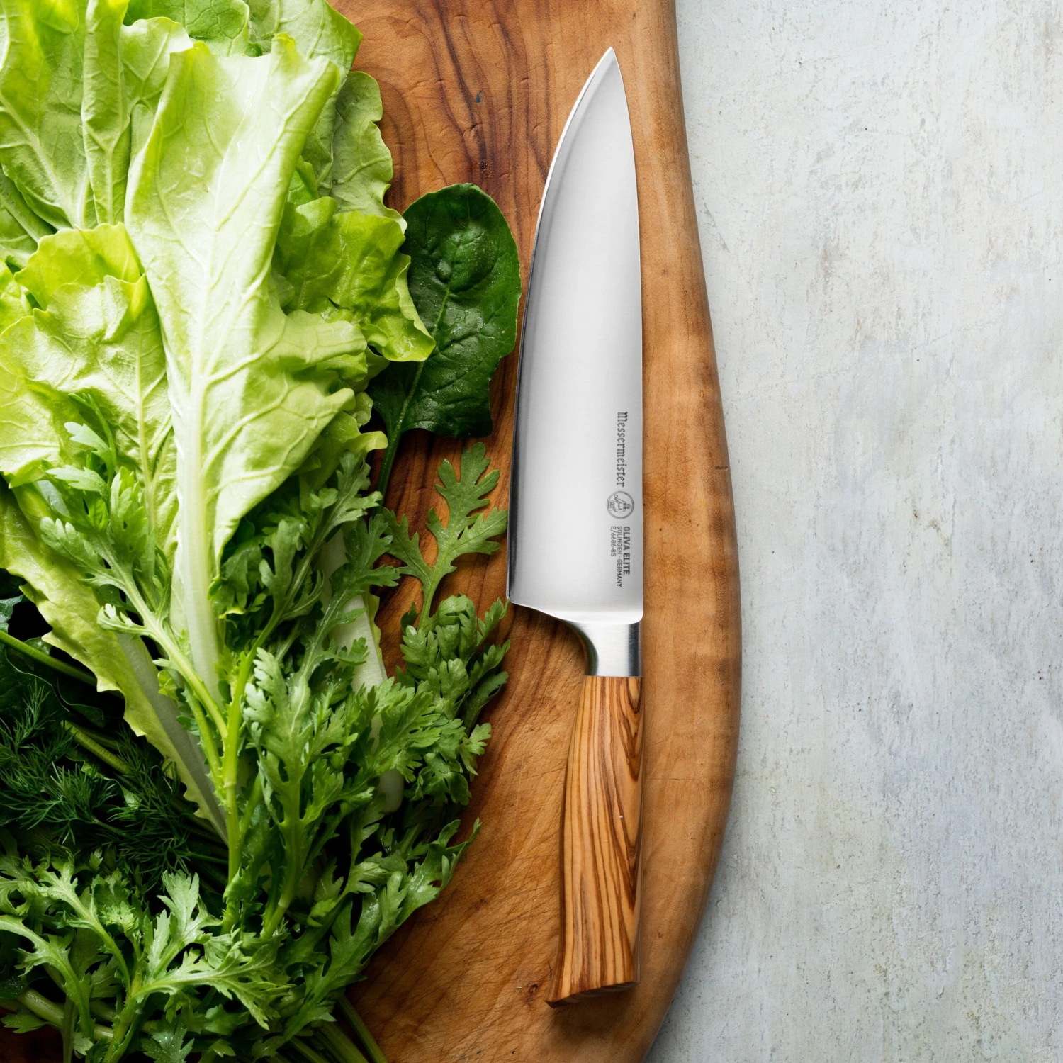 - Natural, Italian olive wood handle provides a secure ergonomic grip with an unsurpassed balance