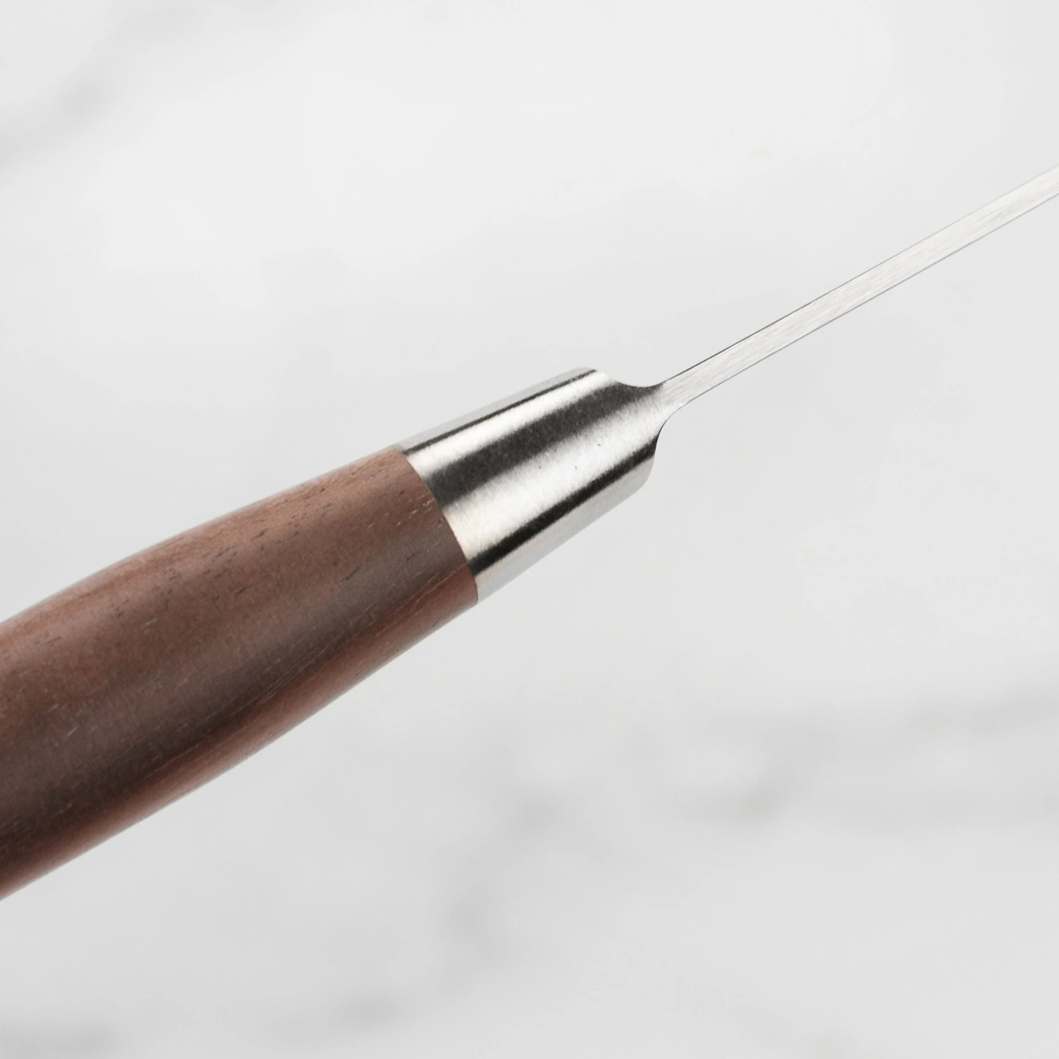 - American Walnut Burl handle features a rich deep brown flared pattern