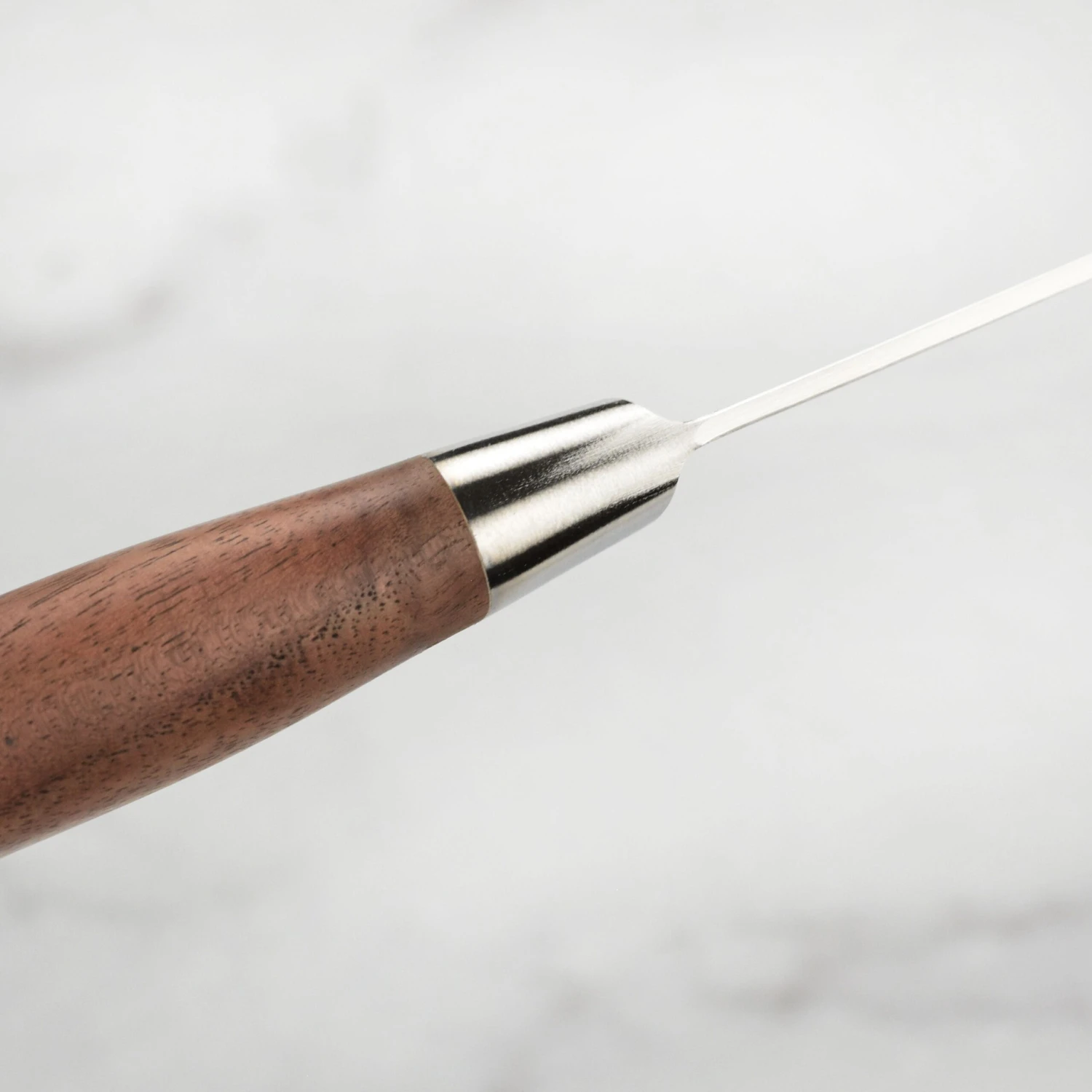 - American Walnut Burl handle features a rich deep brown flared pattern