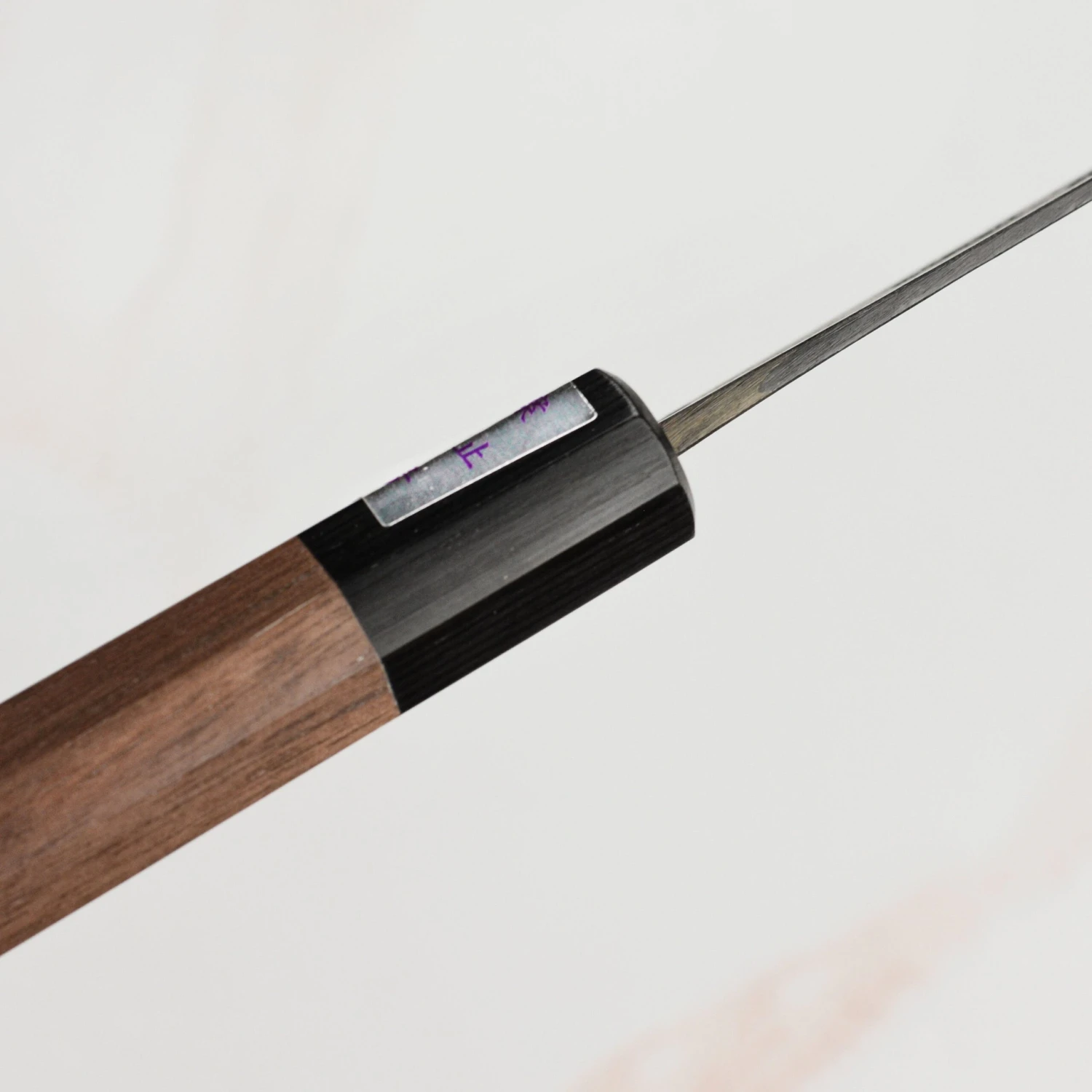 - Hand-forged Aogami #2 blue steel blade; 60 Rockwell Hardness