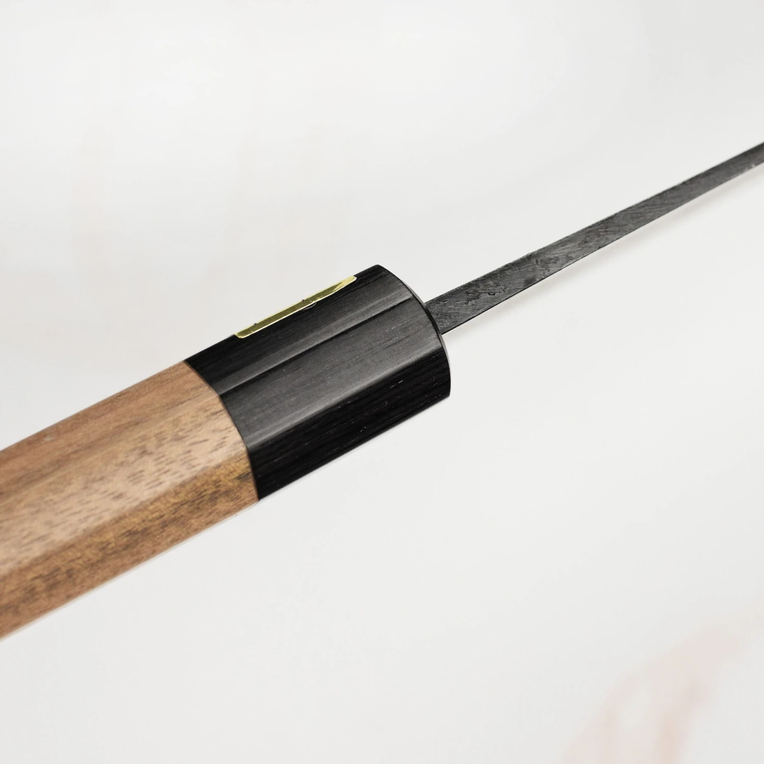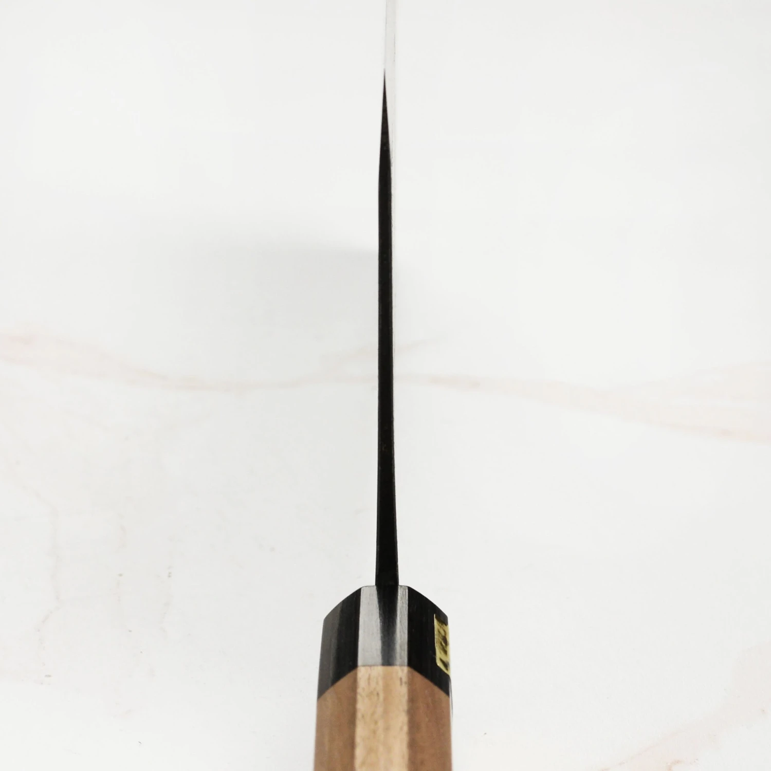 - Hand-forged Aogami Super blue steel blade; 64 Rockwell Hardness