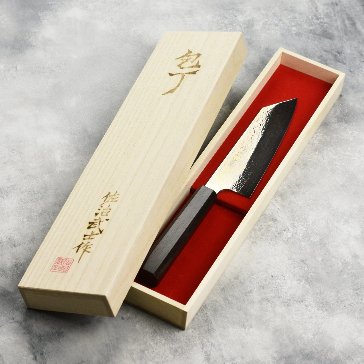 - Ebony wood octagonal handle is nicely fitted to the blade; Includes wood gift box