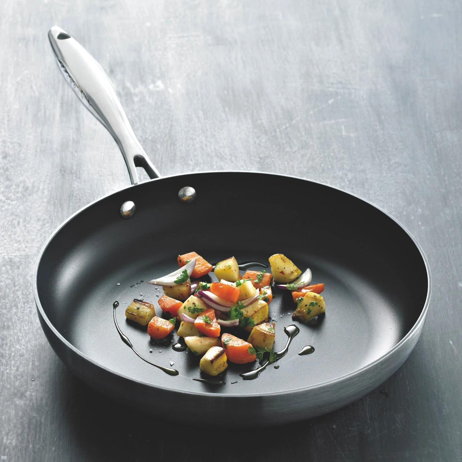 - Stratanium browns, sears, deglazes, reduces and thickens sauces without the messy clean up; cook with little or no oil for a healthier lifestyle