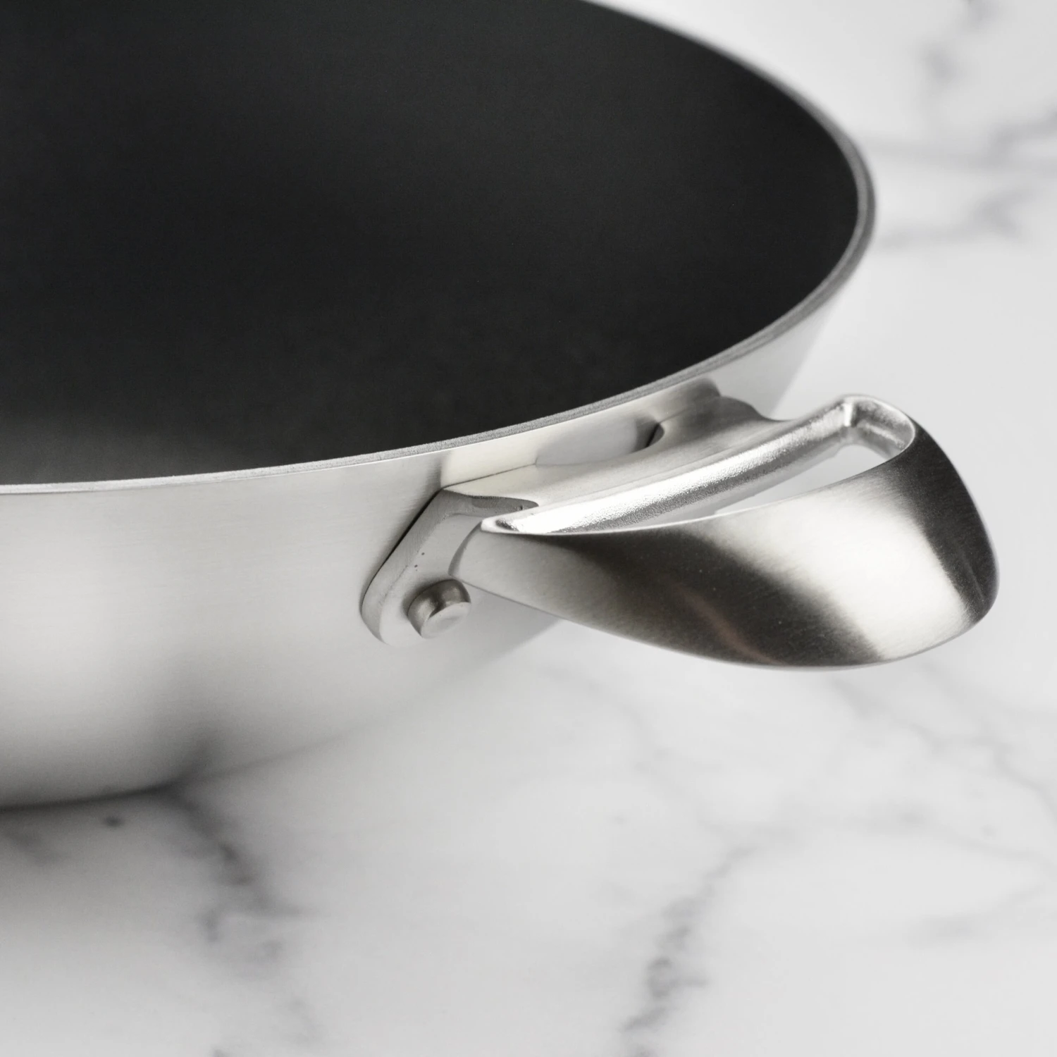 - Cast stainless steel handles stay cool longer; for use with silicone, wood, nylon and metal utensils