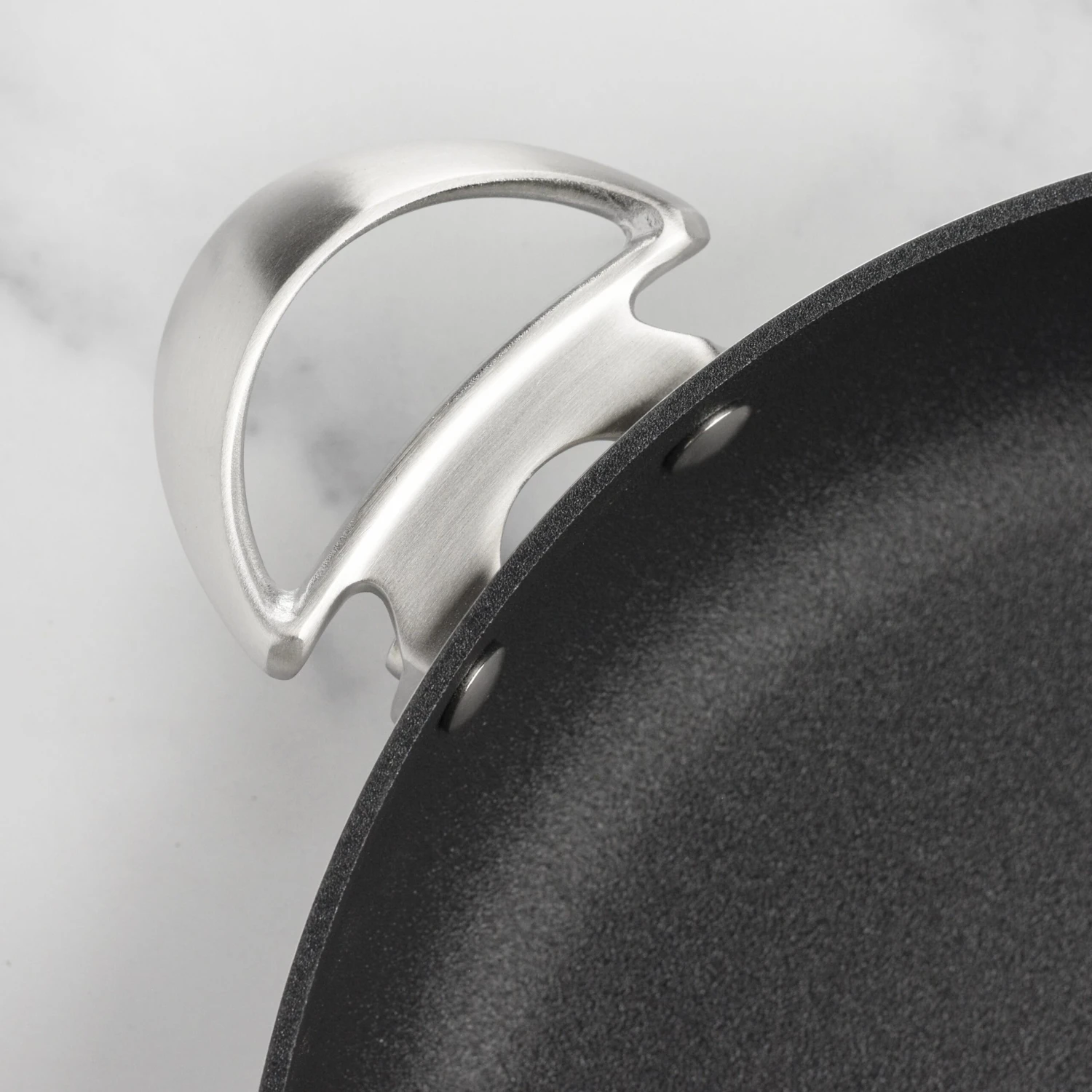 - Cast stainless steel handles stay cool longer; for use with silicone, wood, nylon and metal utensils