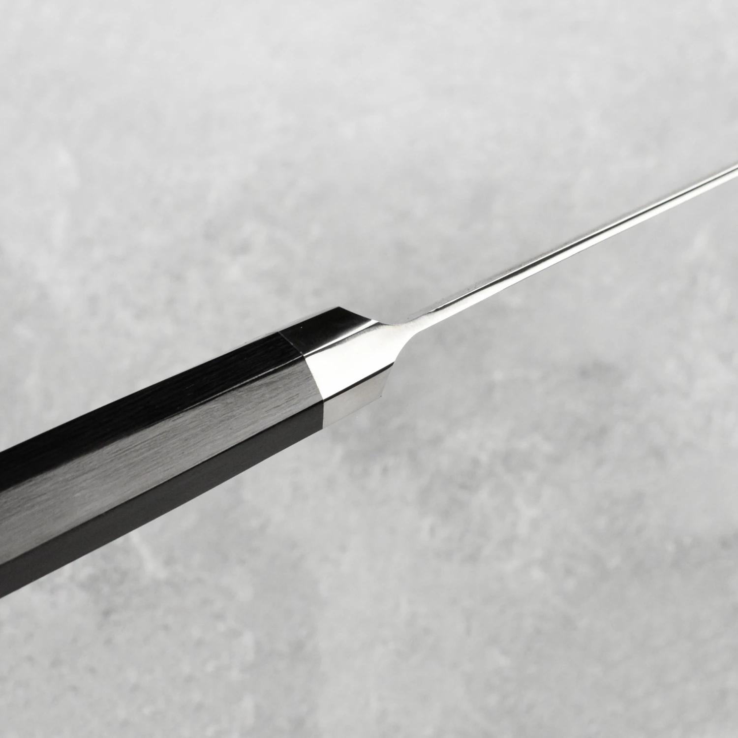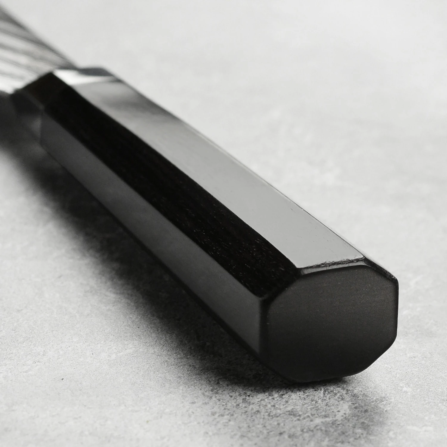 - Traditional Japanese ebony PakkaWood octagon-shaped handle provide a comfortable and secure grip