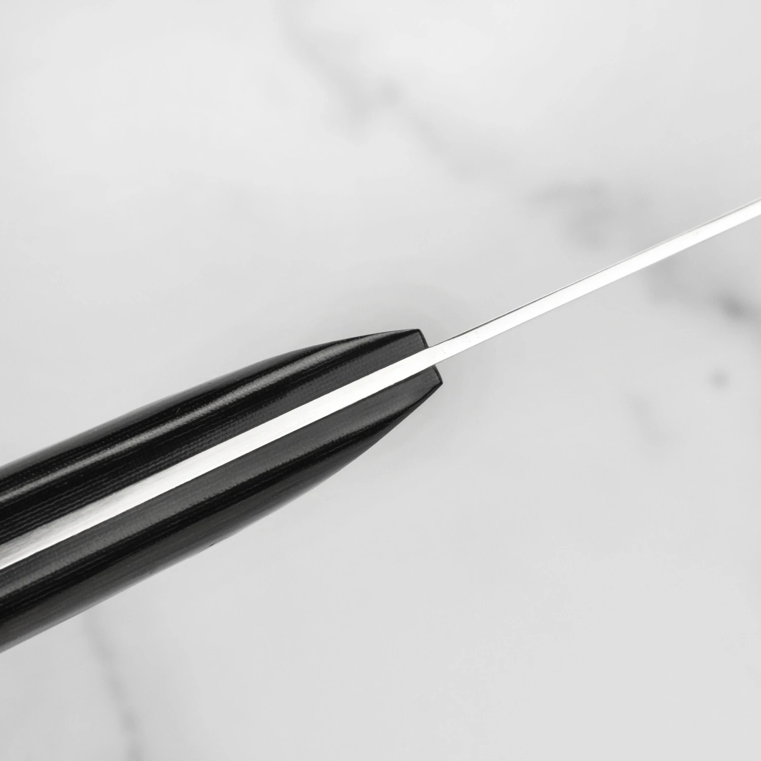 - Aogami #2 blue carbon steel takes a fine edge, holds it for a long time and sharpens more easily than stainless steel