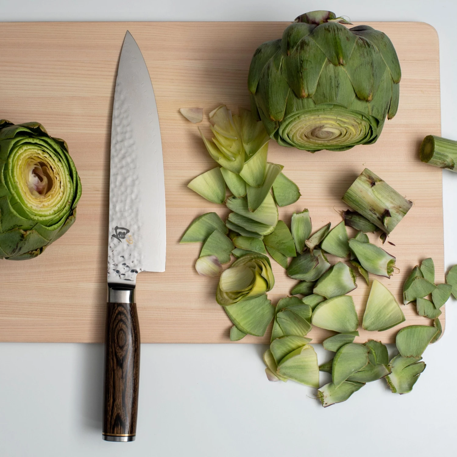 - Hammered Tsuchime finish, helps release the food from the blade easily when slicing