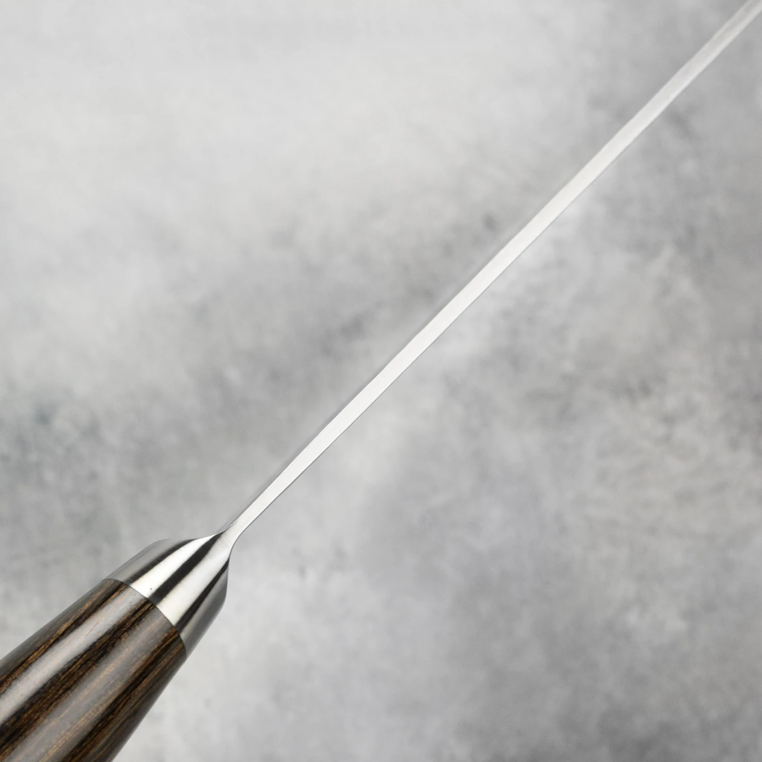 - Rockwell Hardness: 60-61; hand-sharpened Japanese double-bevel blade angle 16° (each side)