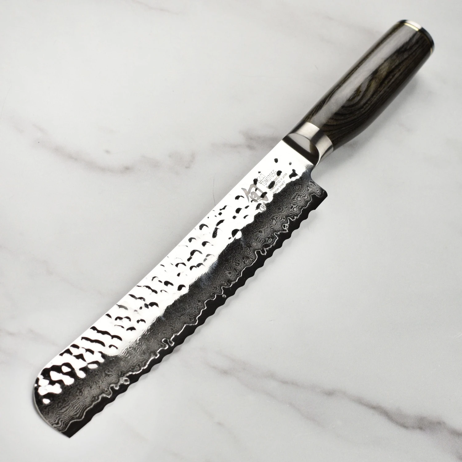 - Hammered Tsuchime finish helps release the food from the blade easily when slicing