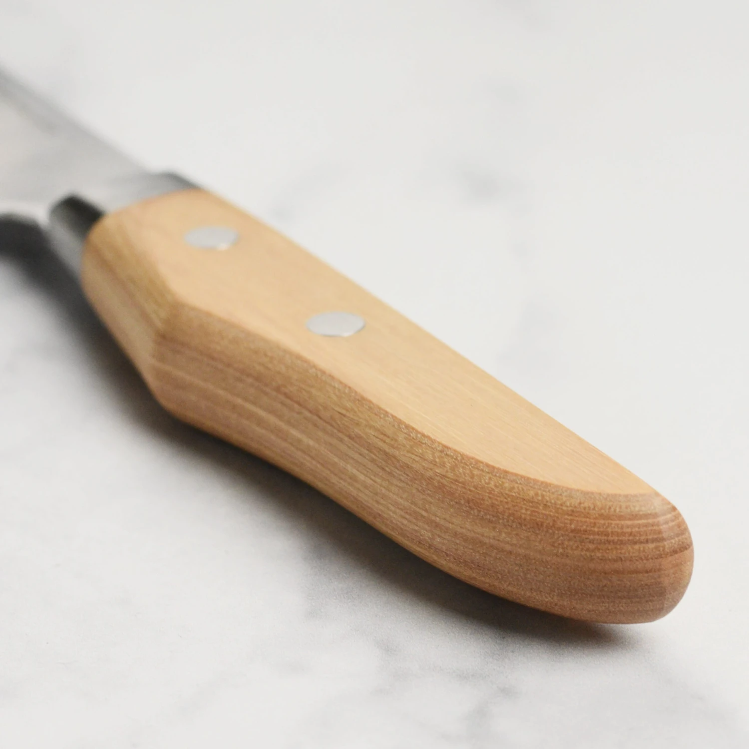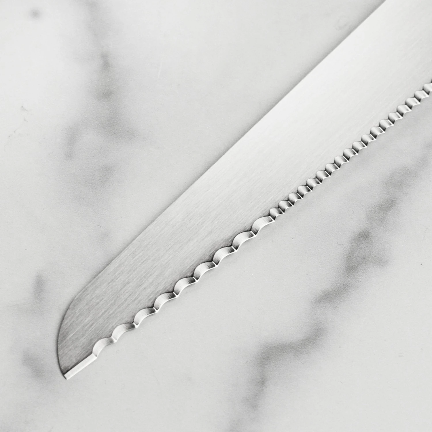 This left-handed bread knife features two different styles of serrations. The wider wavy serrations near the tip cleanly saws through crunchy outer crusts, while the smaller micro serrations cleanly slice through the soft interior without tearing. This serration also works great for slicing delicate foods such as tomatoes. The 8.75″ long blade is big enough to cover larger loaves with a single slice and the gentle curve of the tapered blade makes this a great serrated slicing knife. It is made using high quality stainless steel, has a bolster for balance and a durable riveted pakkawood handle. Made in Japan.