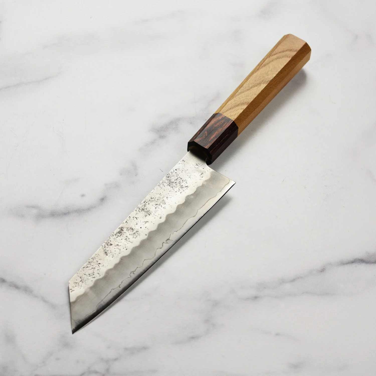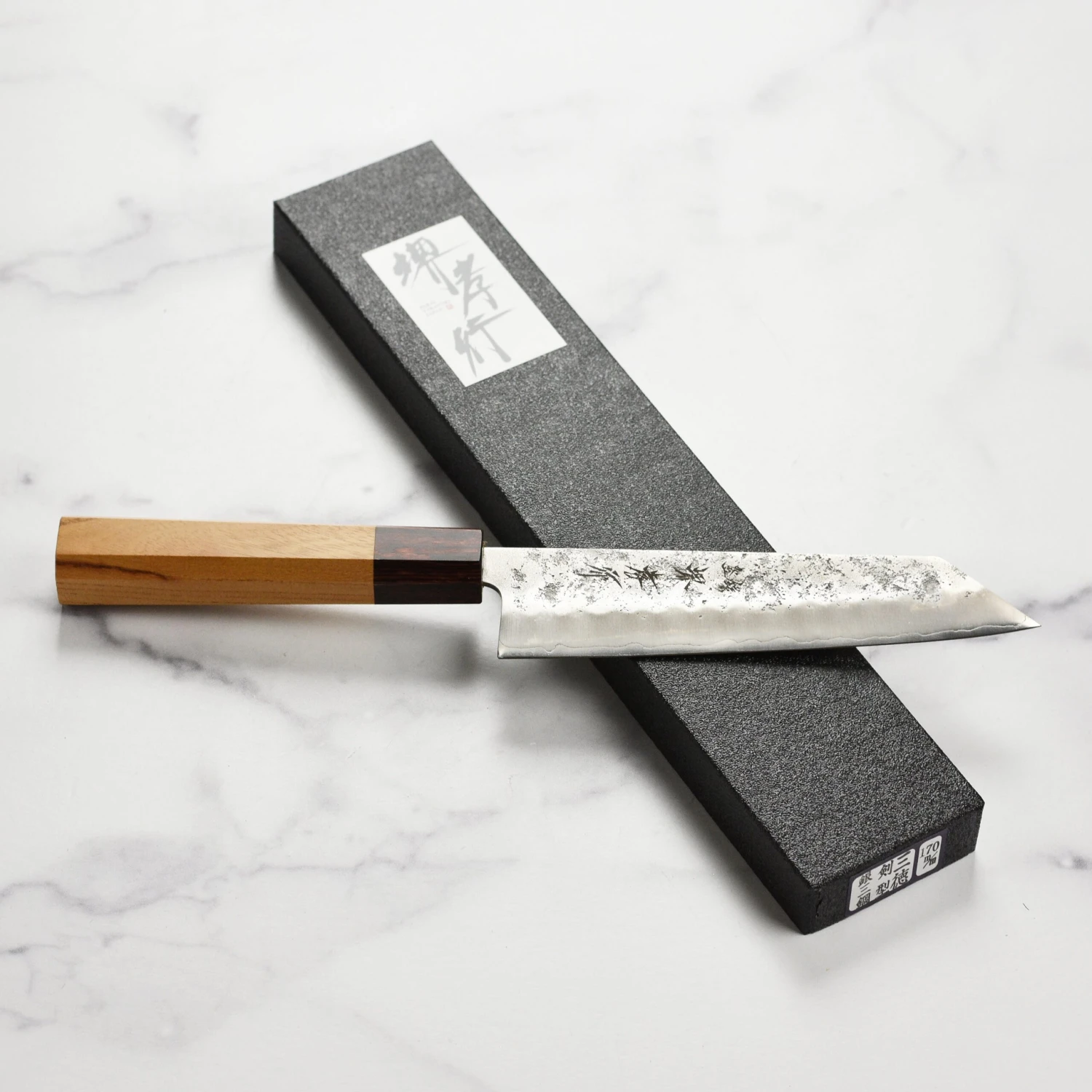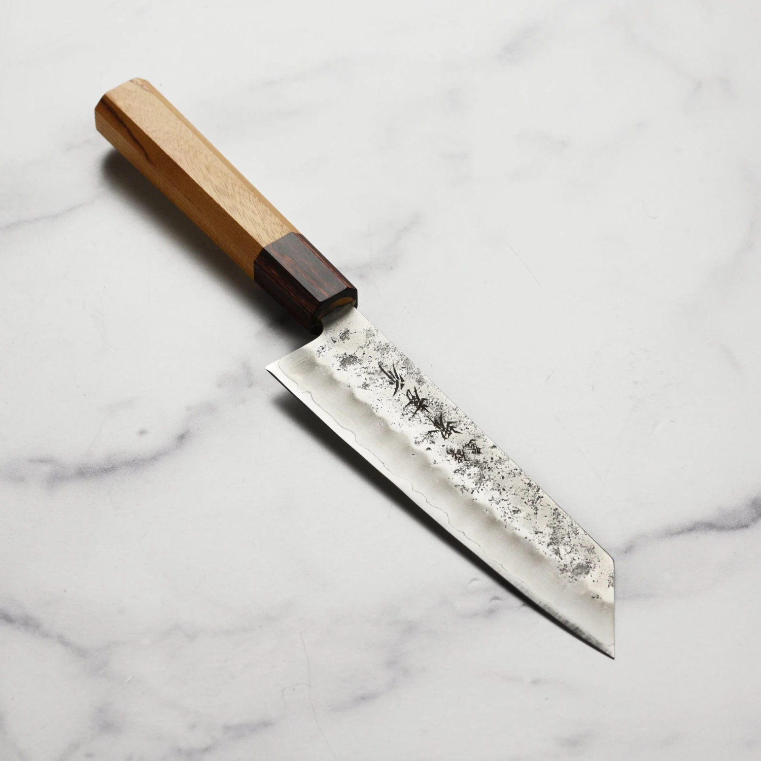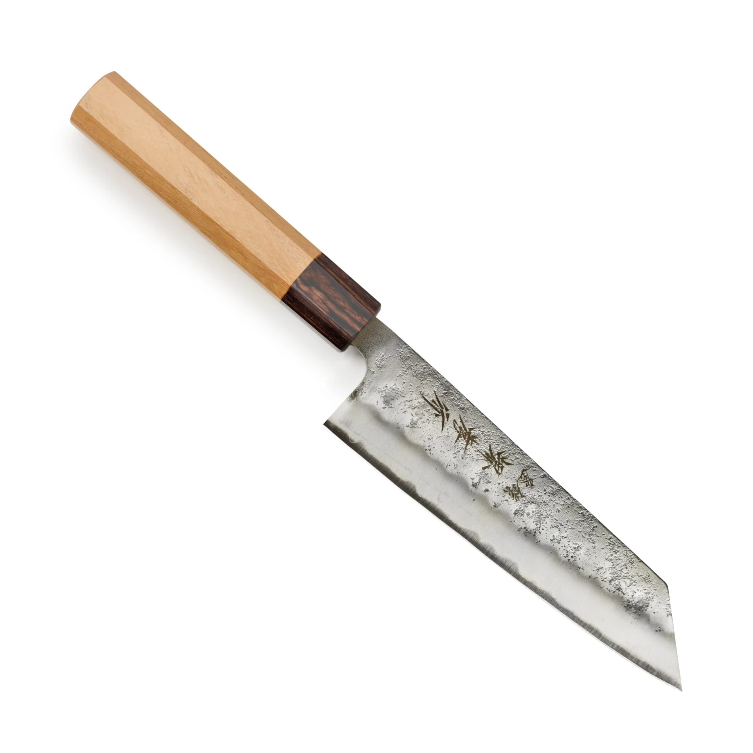 - Ginsan (Silver-3) blade with beautiful nashiji semi-polished finish performs similarly to carbon steel but is much easier to maintain because it is stainless