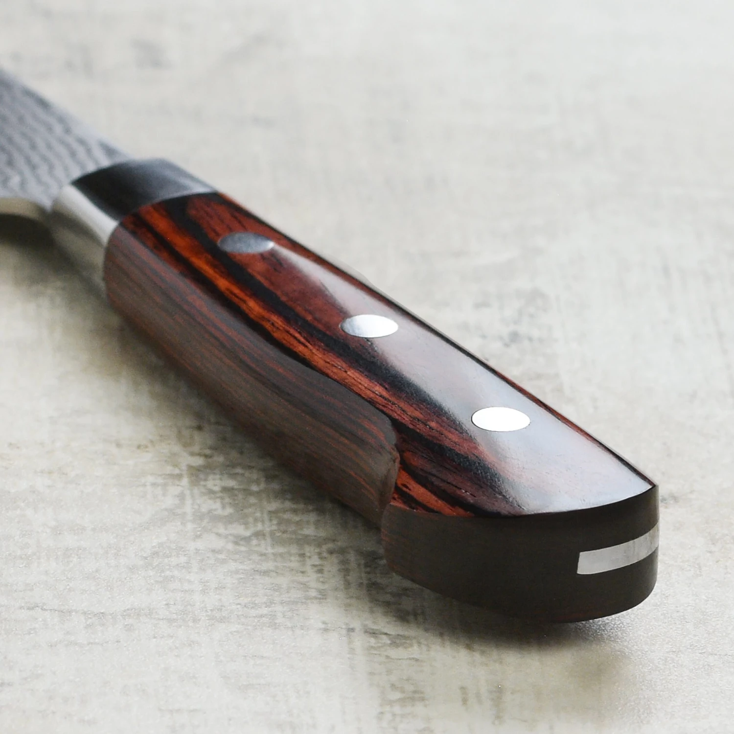 - 33-layer hammered damascus stainless steel blade with VG10 steel core