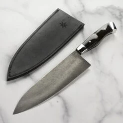Be the first to review “Town Cutler Carbon Pommel 8.5″ Chef’s Knife With Leather Sheath” Cancel reply