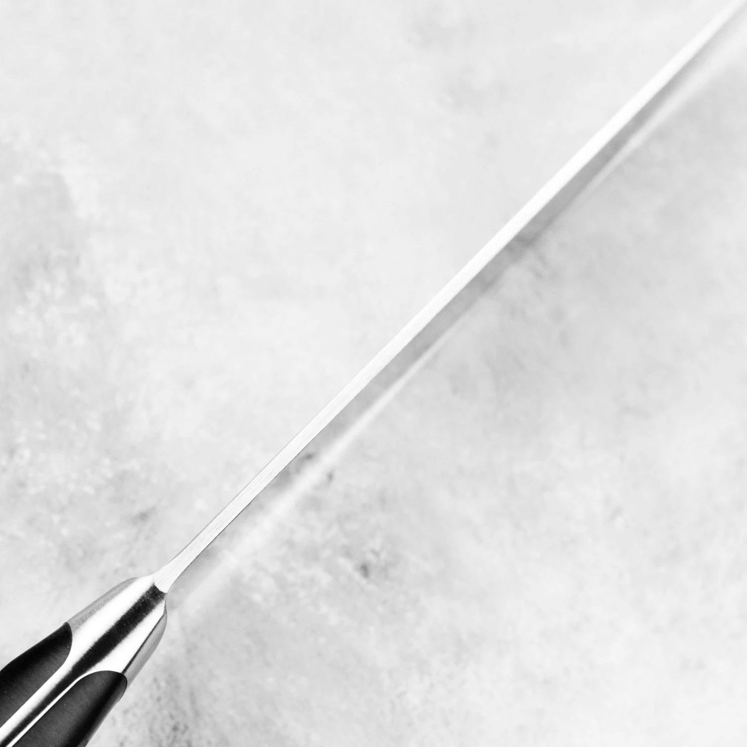 - Fully forged, full tang high-carbon stain resistant stainless steel; half bolster reduces the weight of the knife by 30% compared to the traditional Wusthof Classic series with full bolster, plus it’s easier to sharpen since the entire blade is exposed