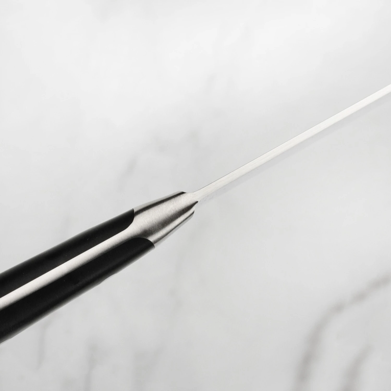 - Fully forged, full tang high-carbon stain resistant stainless steel with reduced bolster