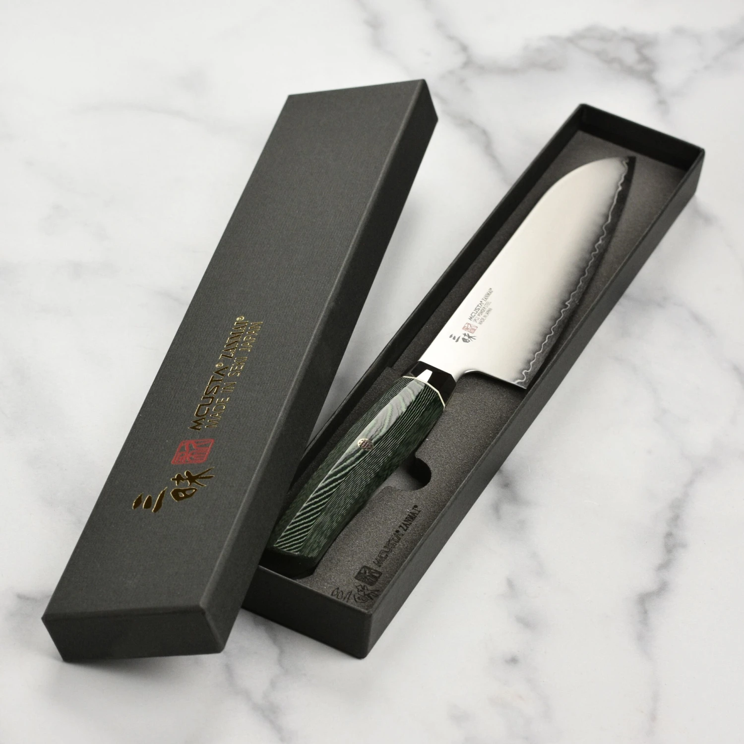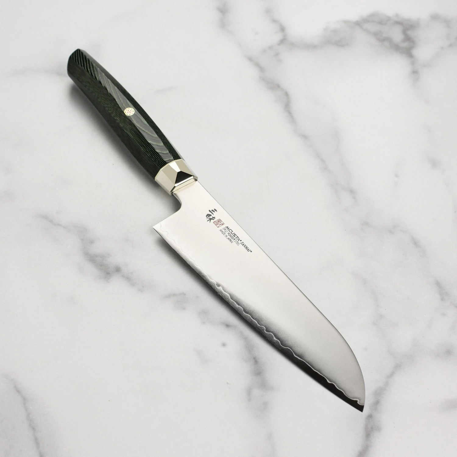 Be the first to review “Zanmai Revolution SG2 7″ Santoku Knife With Green Micarta Handle” Cancel reply